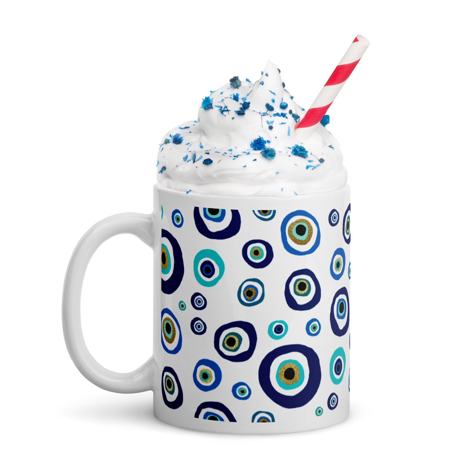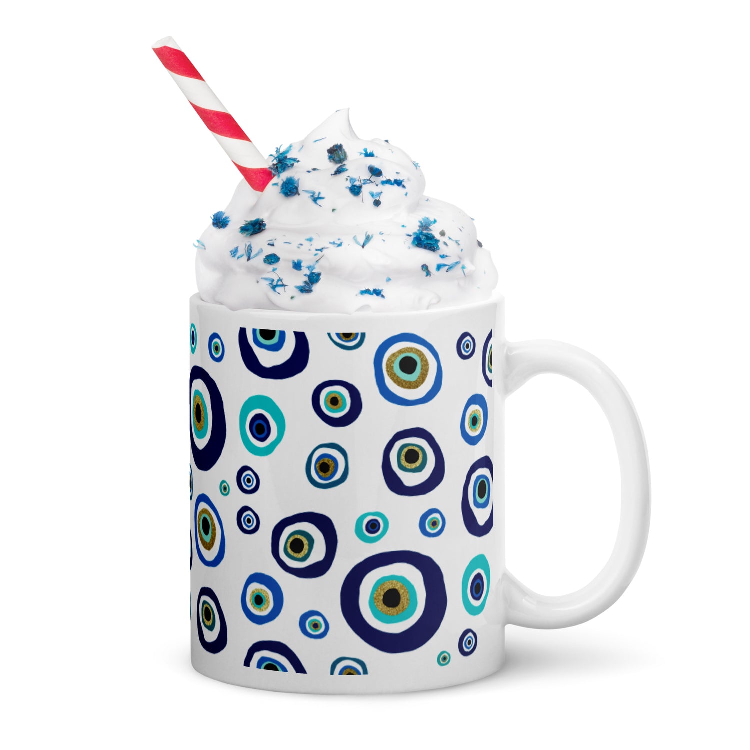 Rich in Tradition, Superstition and Cultural beliefs, The Evil Eye Amulet design isn't just for jewelry anymore. This Belief and symbol is thought to ward off the Evil Eye and any Bad Juju, you can start your morning with this design to keep the good vibes rolling!