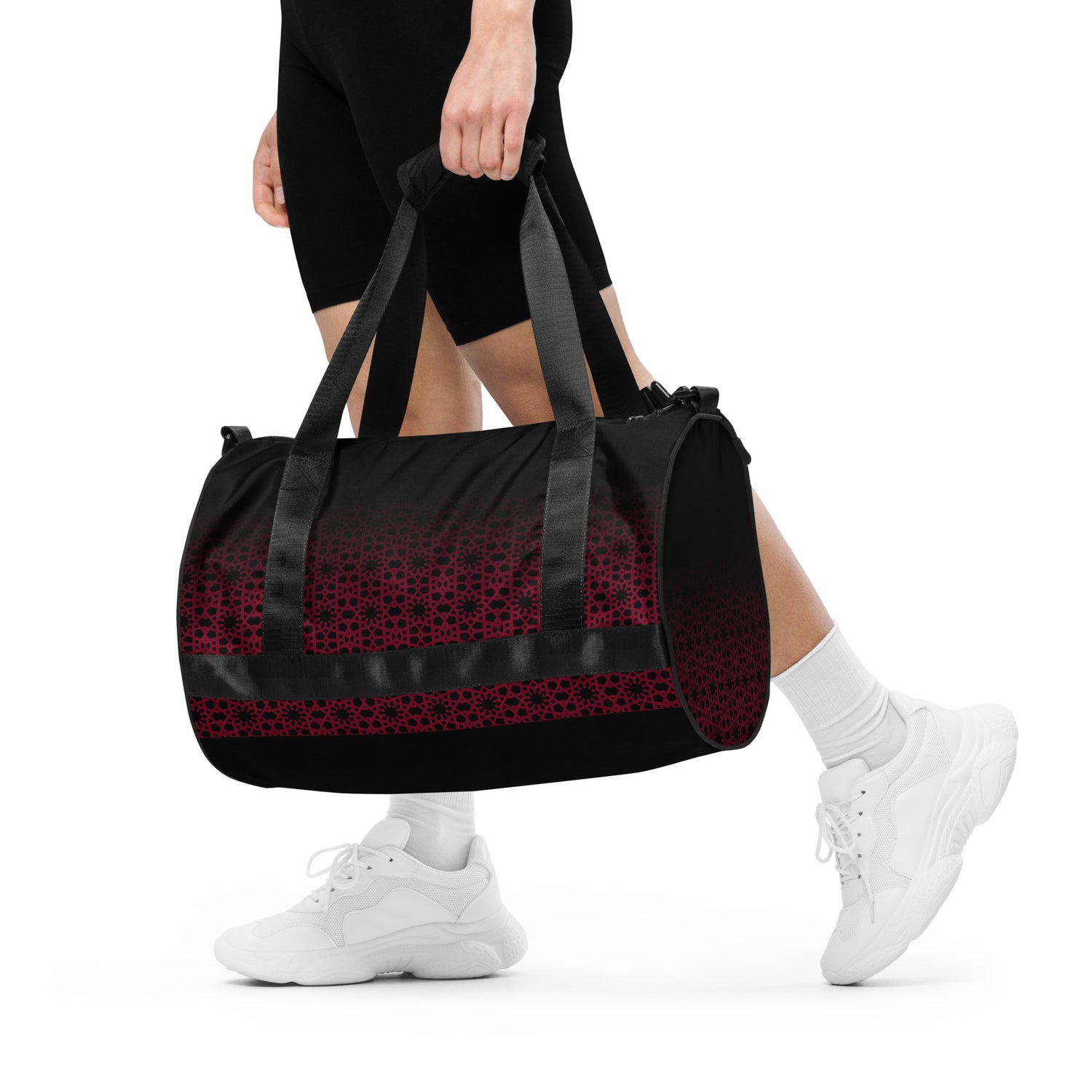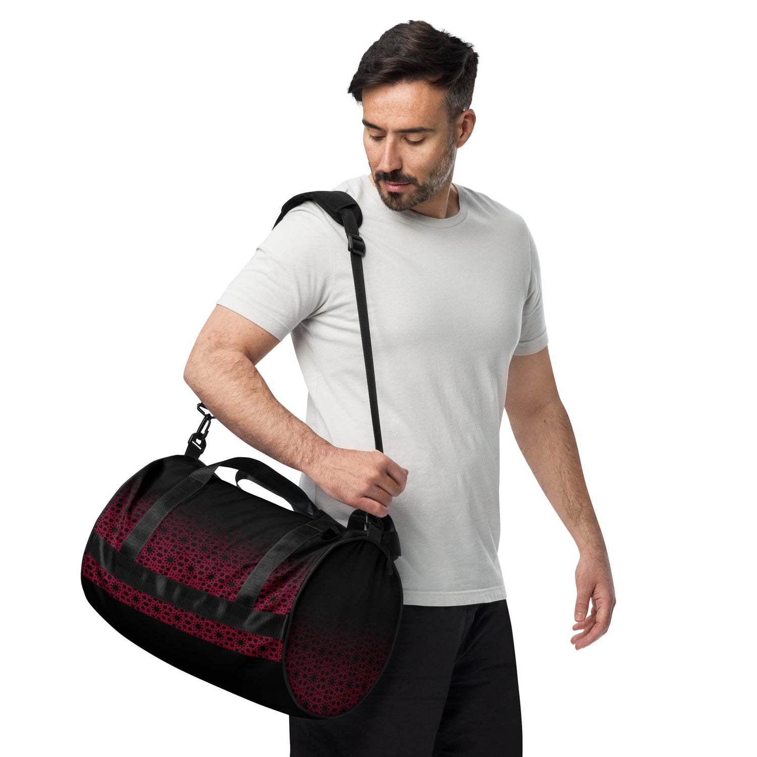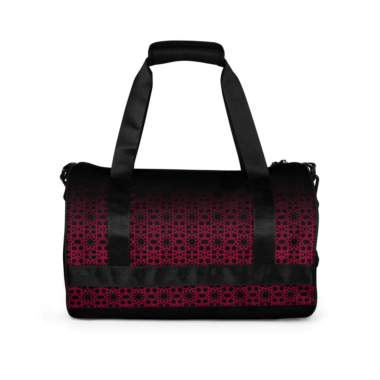 Ready to get your fitness on? Add some punch to pumping iron with this all-over print gym bag. Made from 100% polyester and sturdy, water-resistant fabric, this bag is fun meets function. And it’s got pockets!