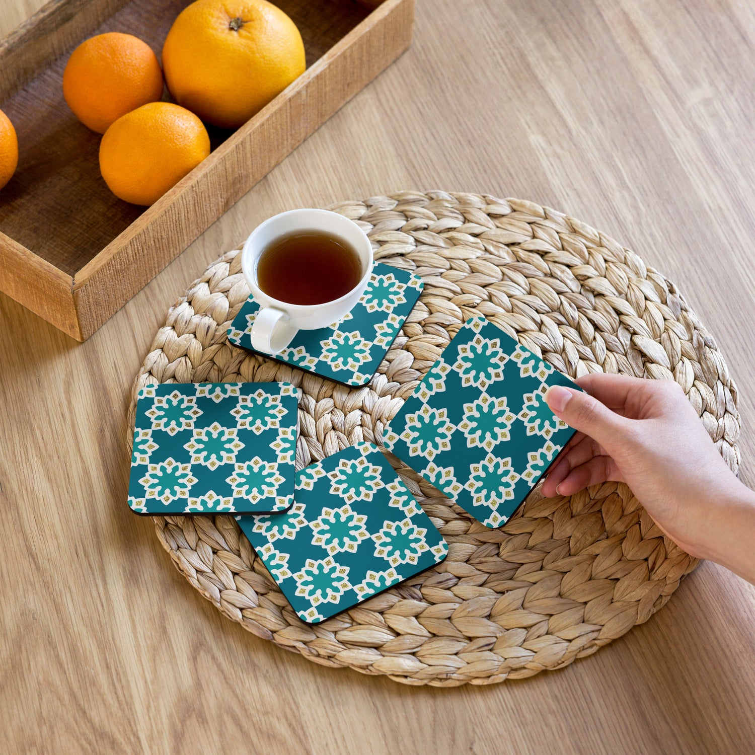 Infuse your morning with memories of your travels through the Middle-East, with this cork-back coaster featuring this calming arabesque design - a perfect match for your favorite mug! Create a homey feel while protecting your coffee table or nightstand from mug stains and moisture. The coaster is waterproof and heat-resistant, designed to last a long time. Buy it for yourself or as a lovely gift for your friends and family.