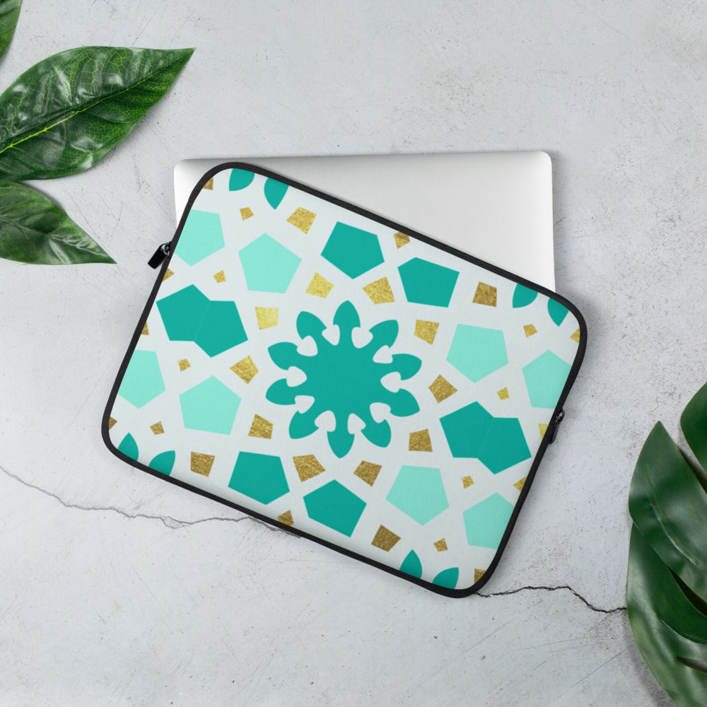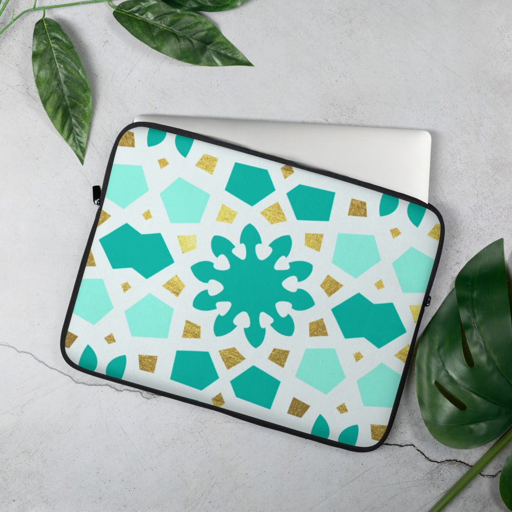 Laptop Sleeve - Geometric Arabesque Pattern in Mint and Gold