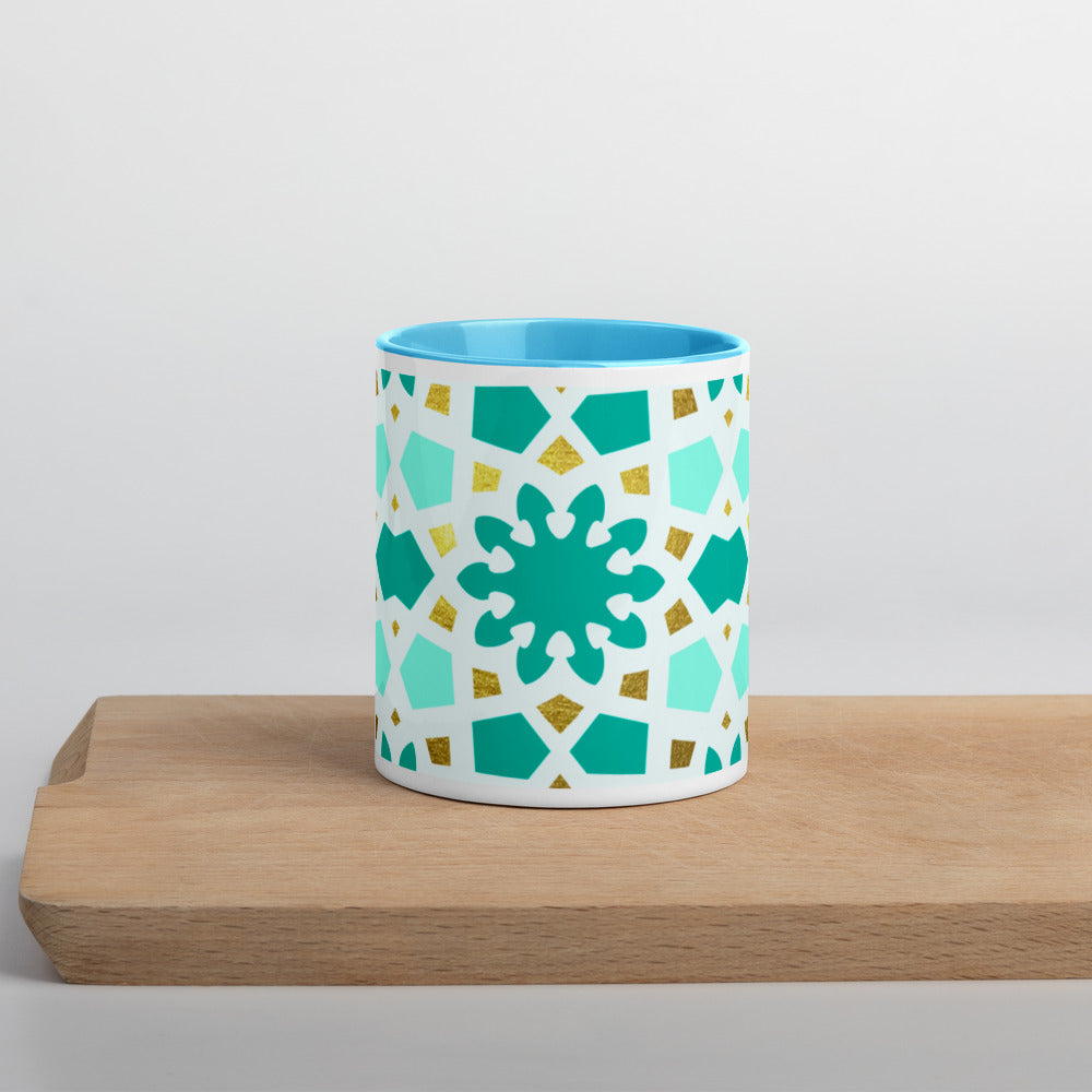 Mug with Color Inside - Geometric Arabesque Pattern in Mint and Gold
