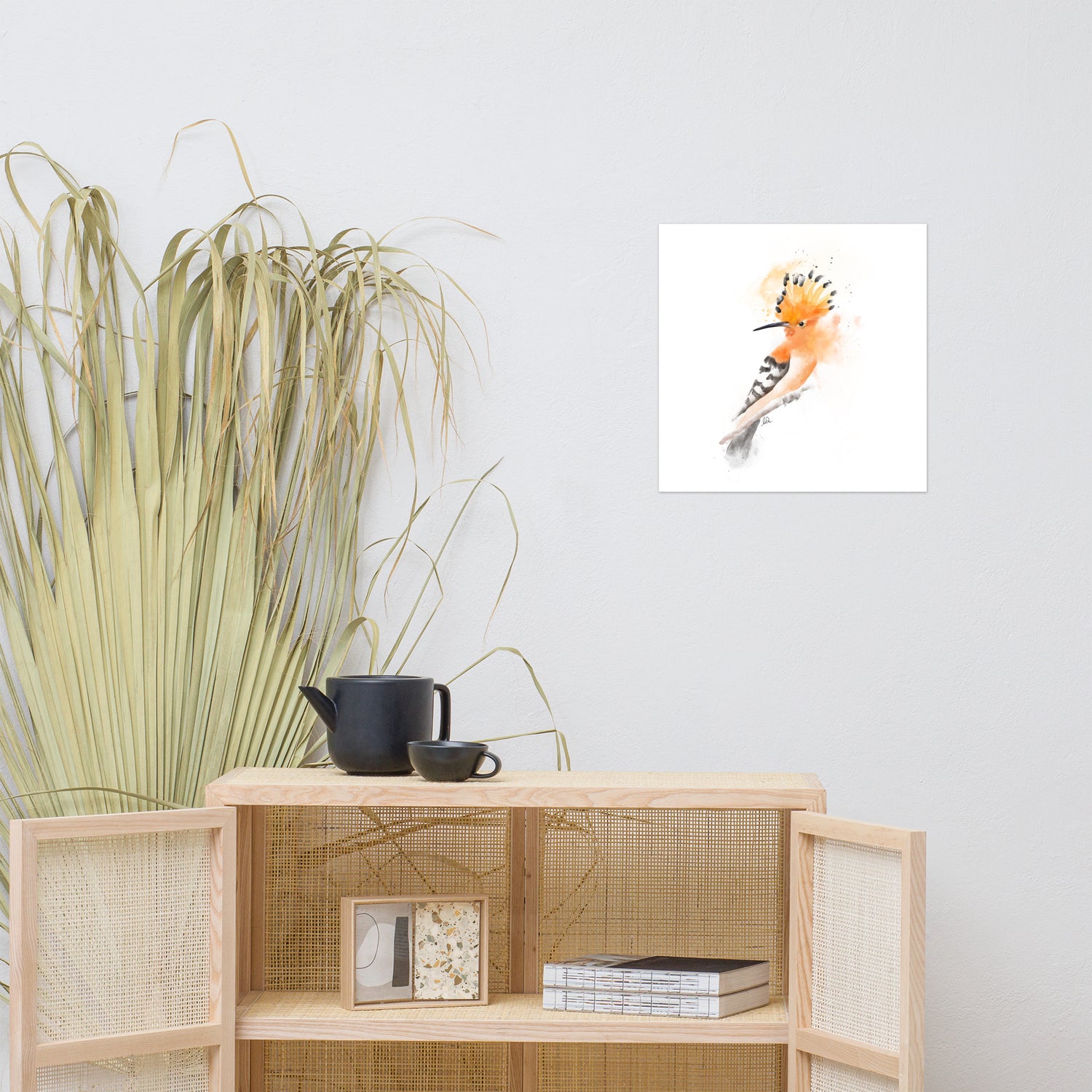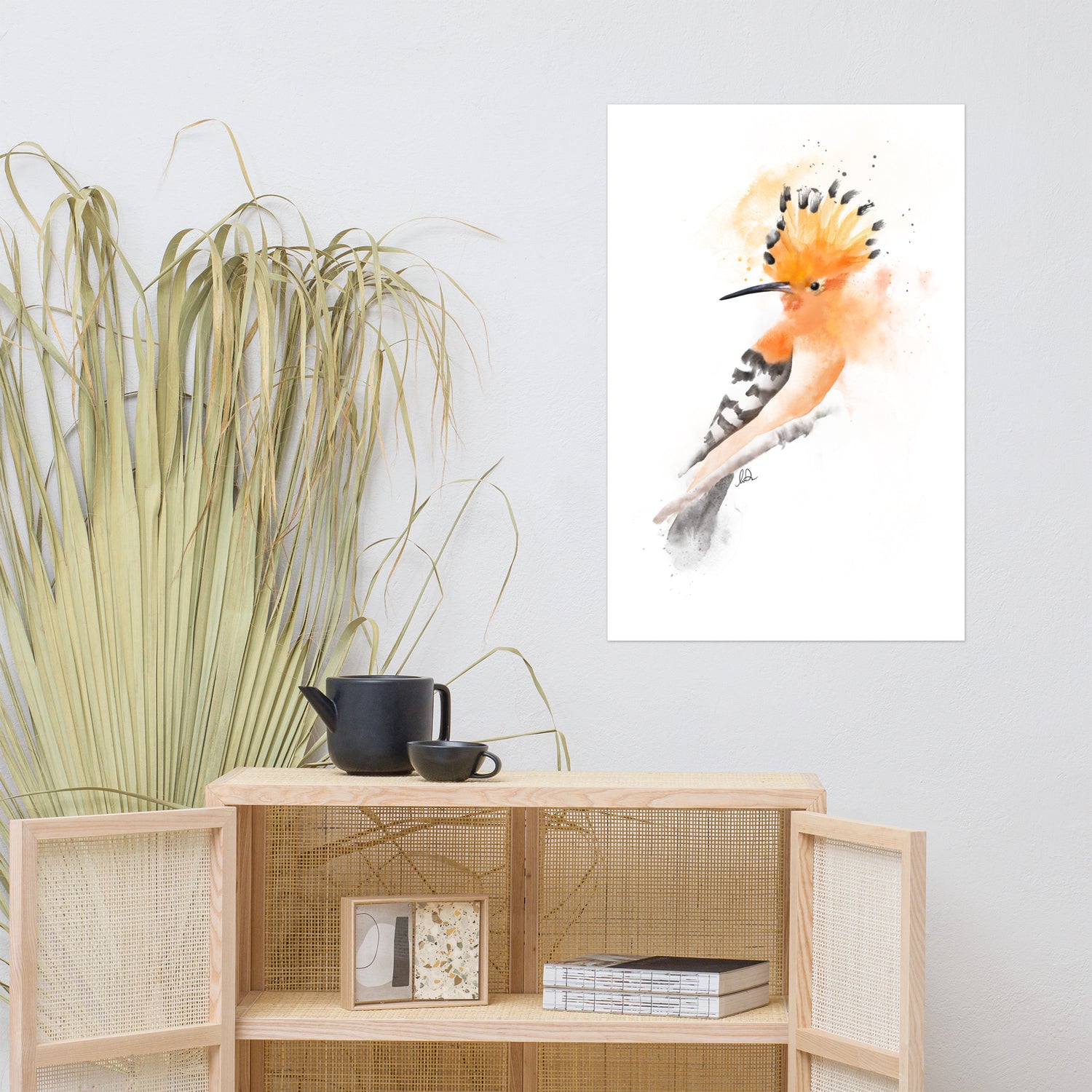 This poster print of a Hoopoe bird watercolor painting is a minimal and chic way to elevate your space. The artwork stands out from any angle as the matte museum-quality paper diffuses the light.