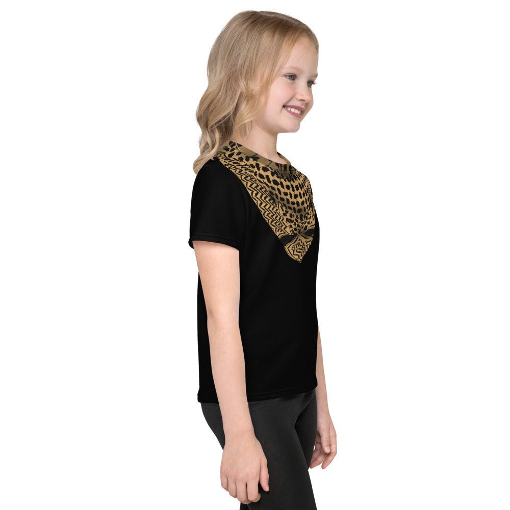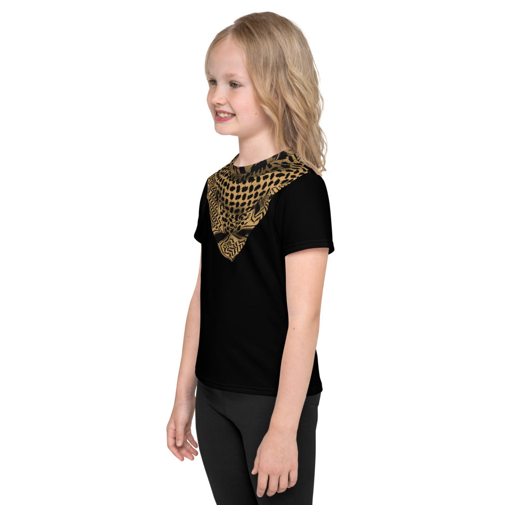 Kids crew neck t-shirt 2T to 7 years - Keffiyeh Shemagh in Tan and Black