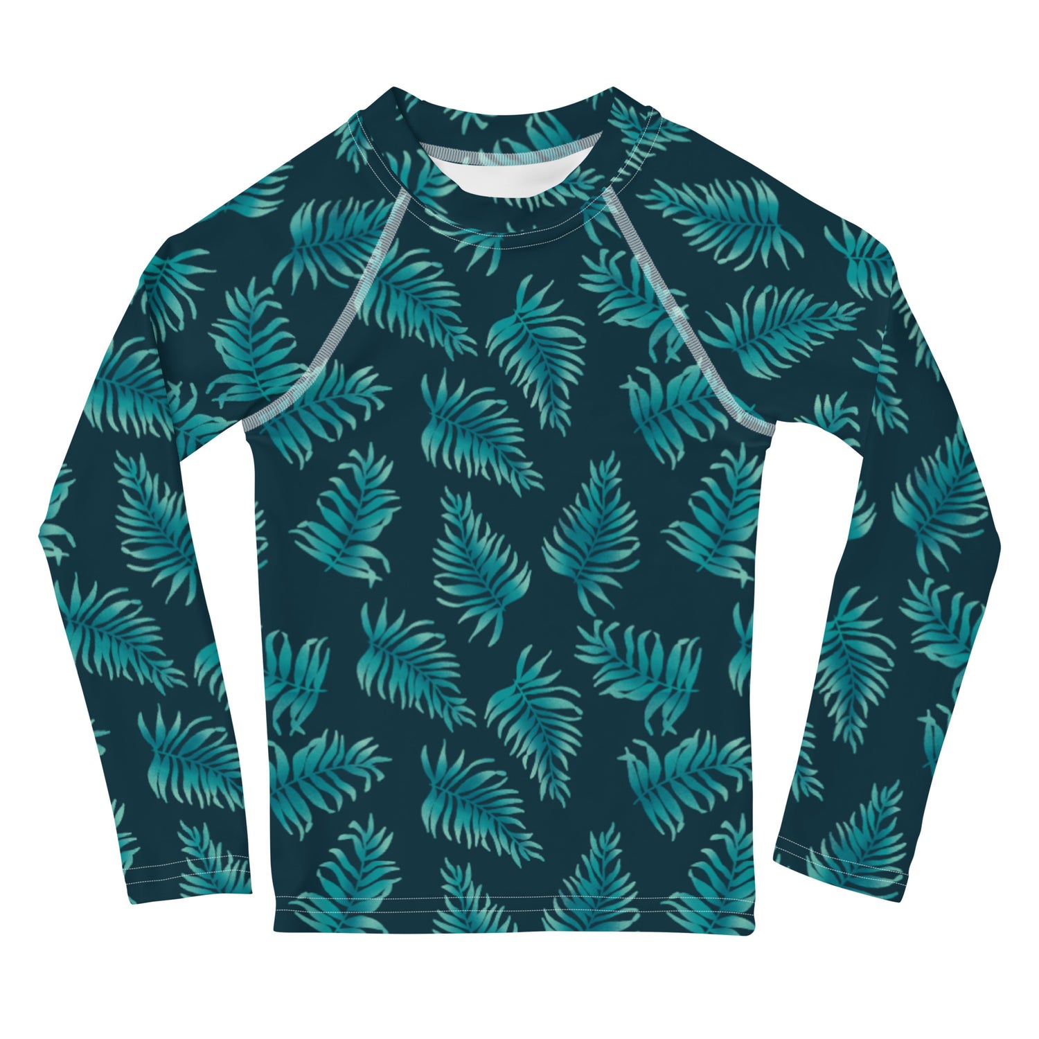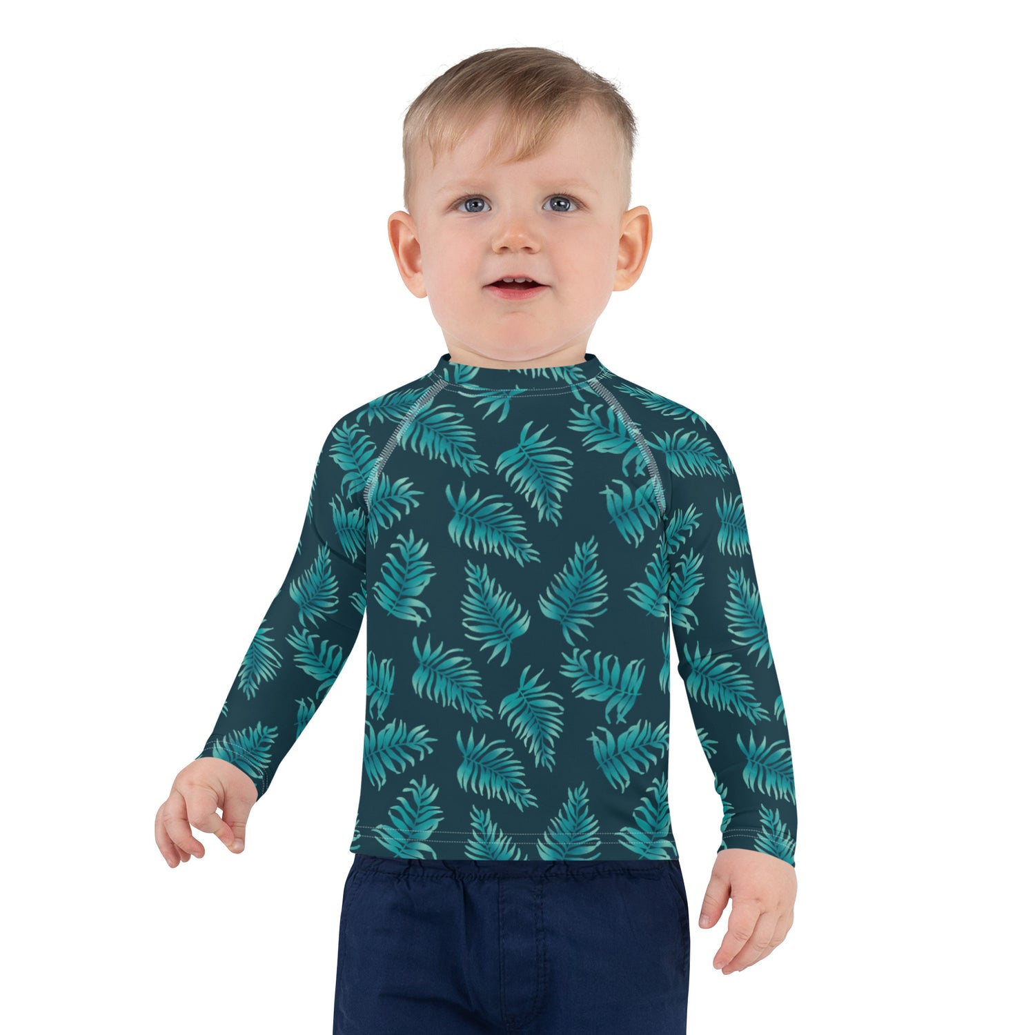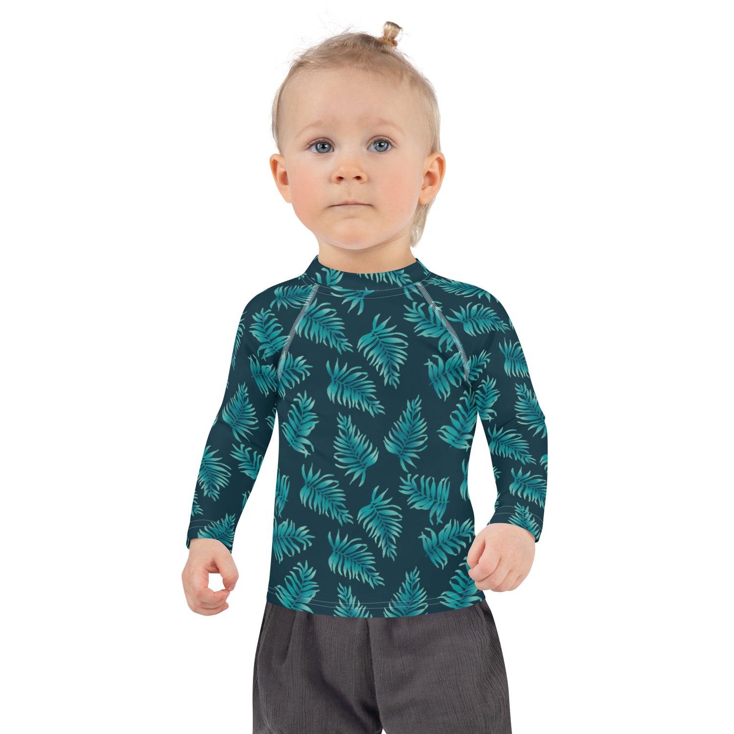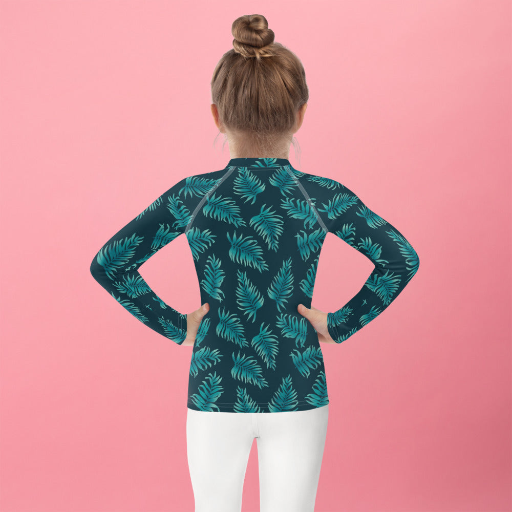 Protect the little ones from the elements with this colorful kids rash guard with a fresh palm print. Its sun-protective fabric and long body and sleeves make it perfect for running around on the beach, or just being active indoors.