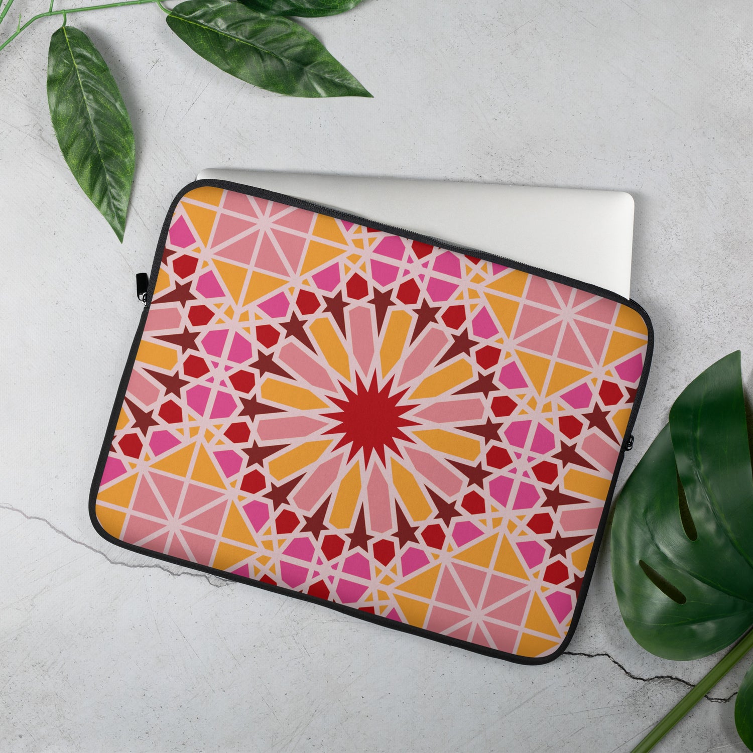 We've infused a traditional Arabic geometric design with a bright modern color palette to create a culturally rich piece of art. If you're looking for a unique and visually striking addition to your day, this laptop sleeve is the perfect choice.