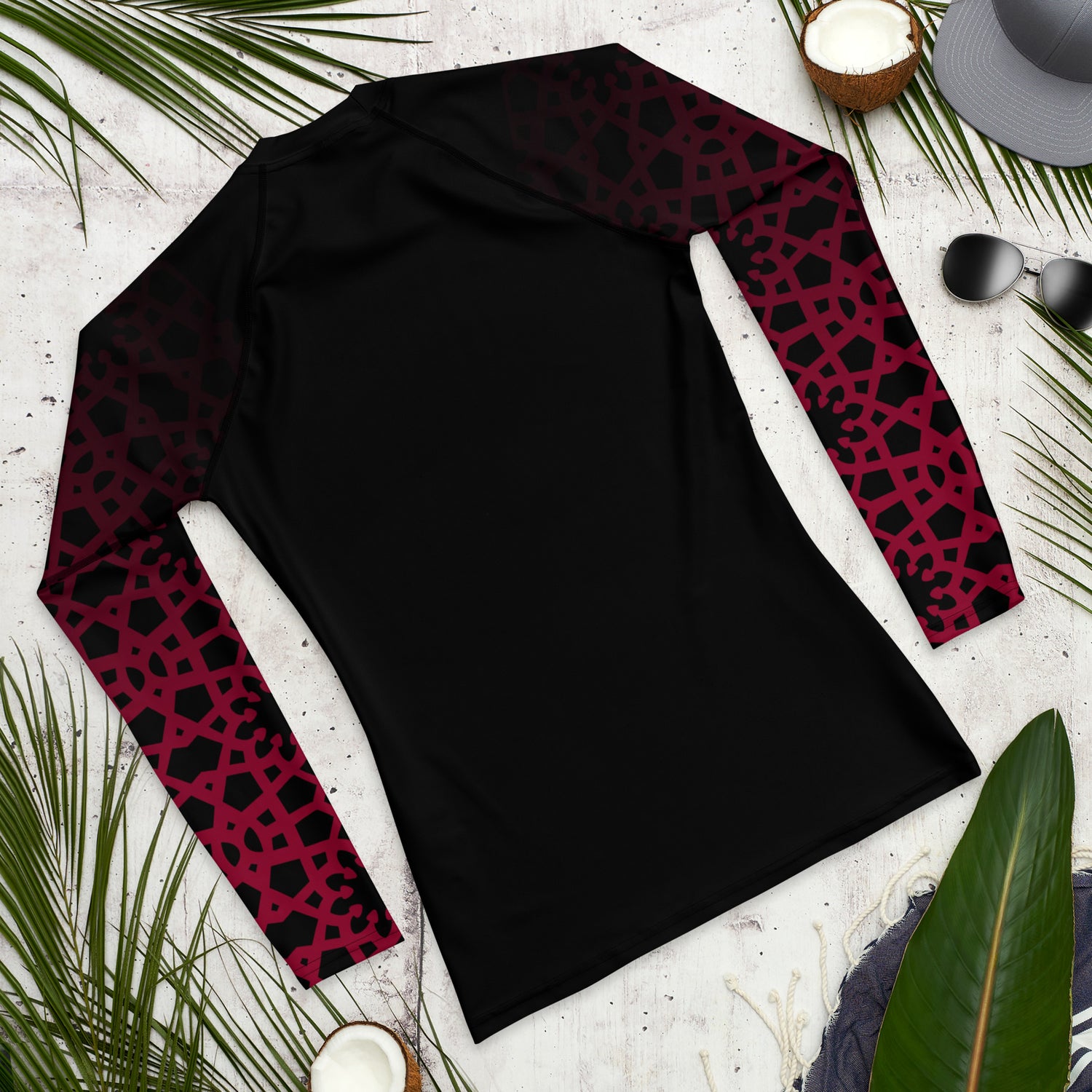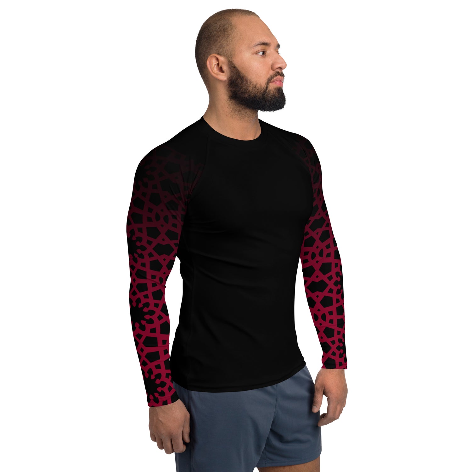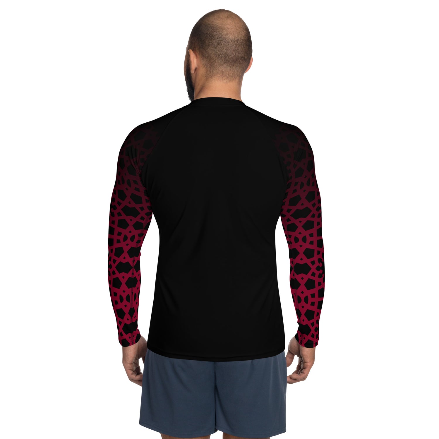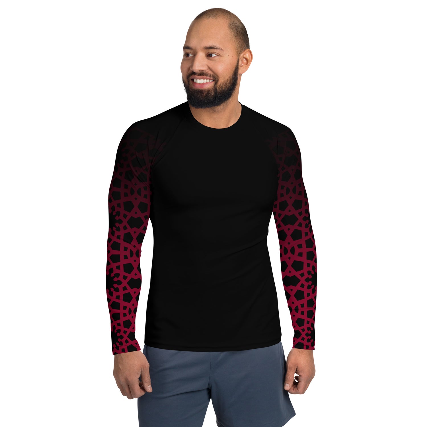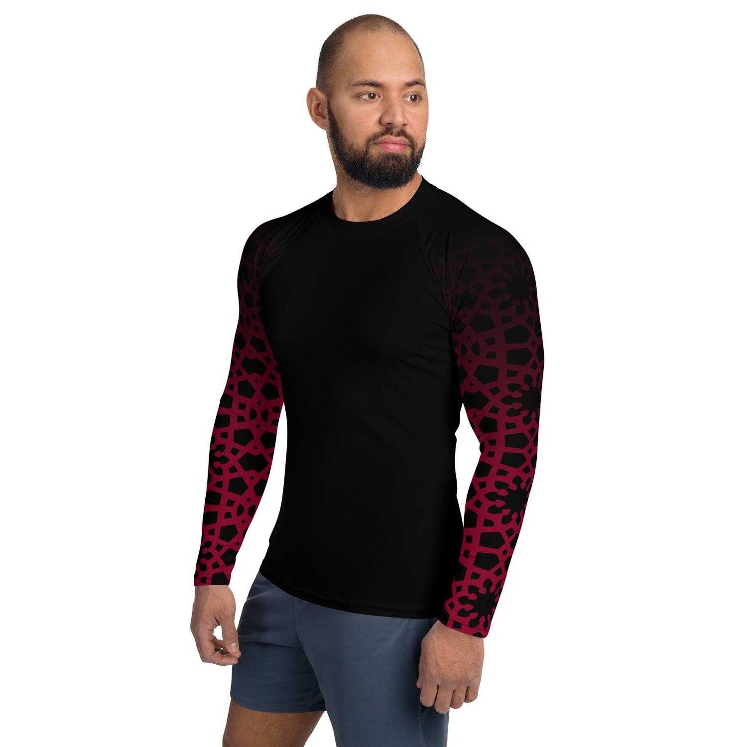 Men's Rash Guard - Geometric Ombre in Black and Red Sleeve