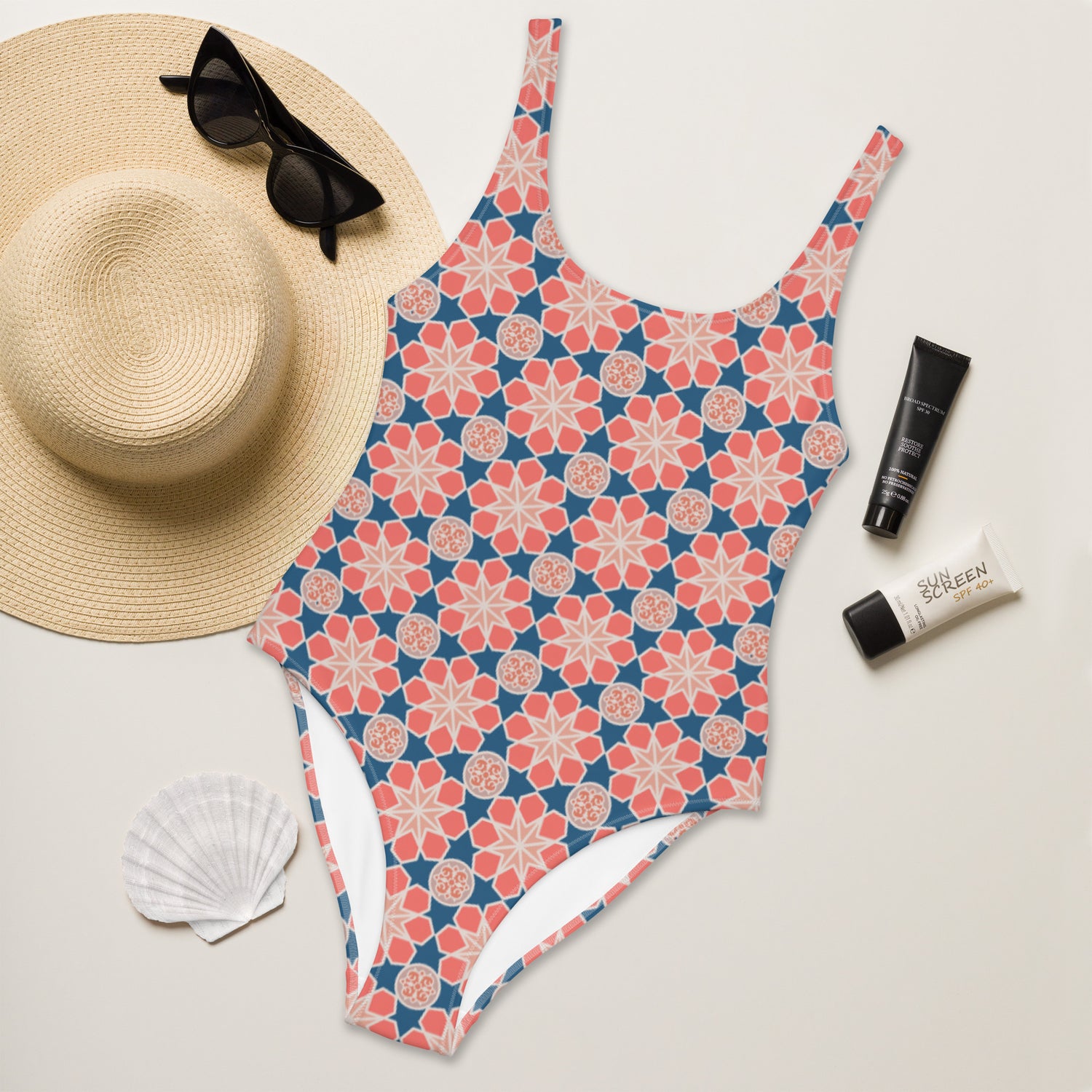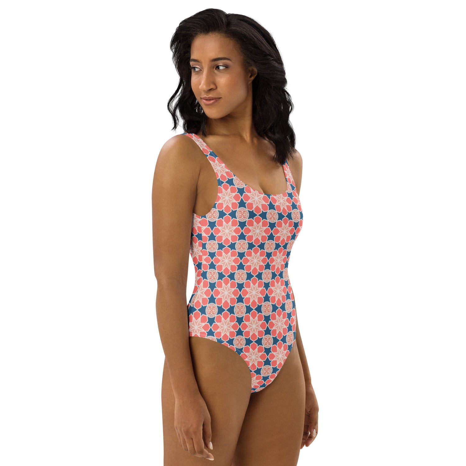 One-Piece Swimsuit - Geometric Arabesque Mashup in Pink