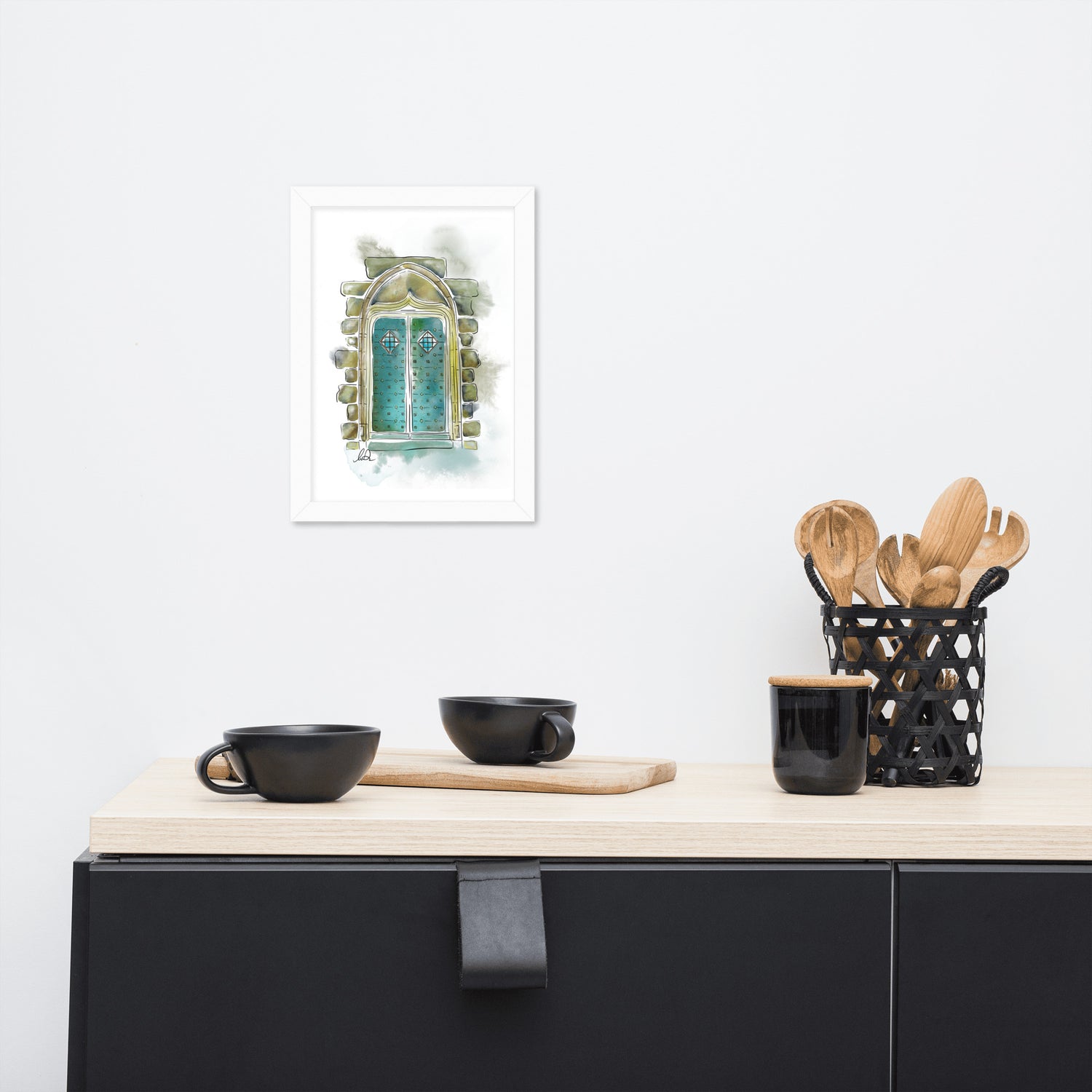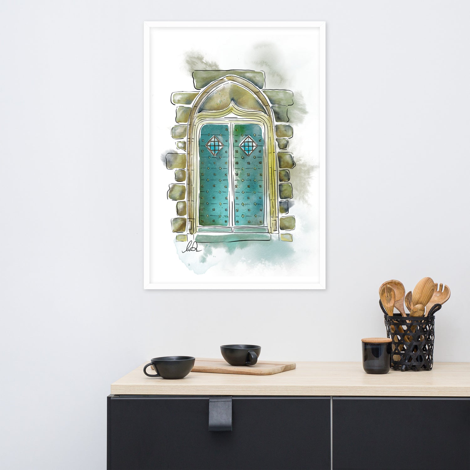 Add a bold statement piece to any room with this watercolor framed poster print of Porte du Chateau de Pompadour. Printed on quality, thick, matte paper, this watercolor artwork showcases one of the portes or doors in the beautiful, Chateau de Pompadour in France.