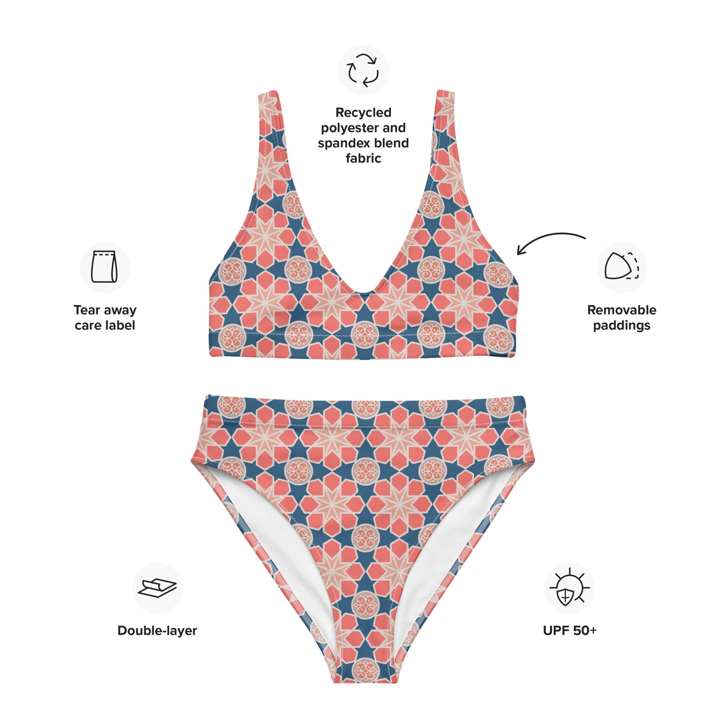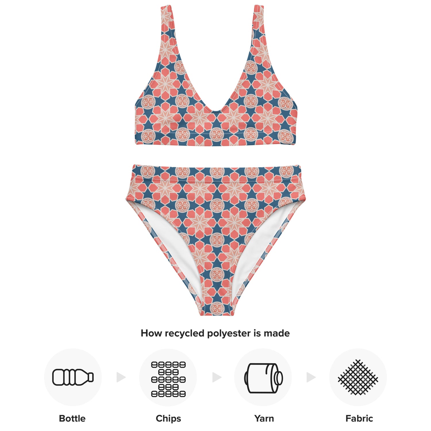 Recycled rPET high-waisted bikini 🍃 Geometric Arabesque Mashup - Pink
