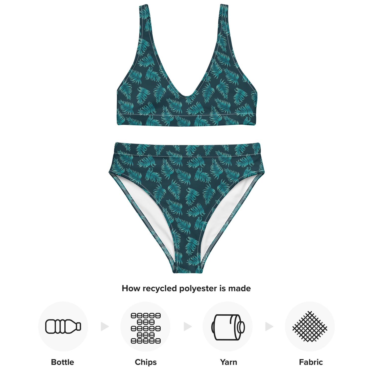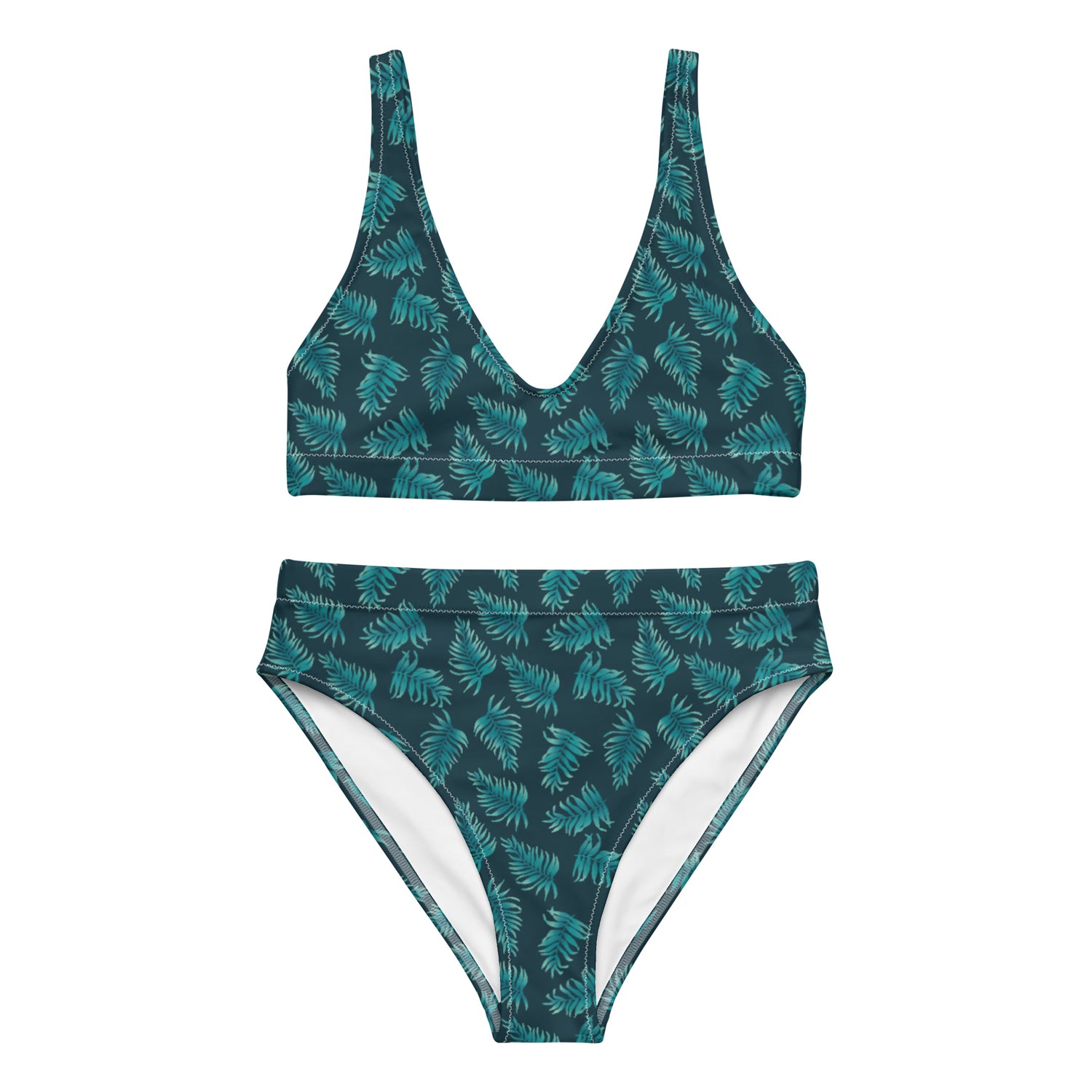 Recycled rPET high-waisted bikini - Palm Leaves in Blue Ombre 🍃