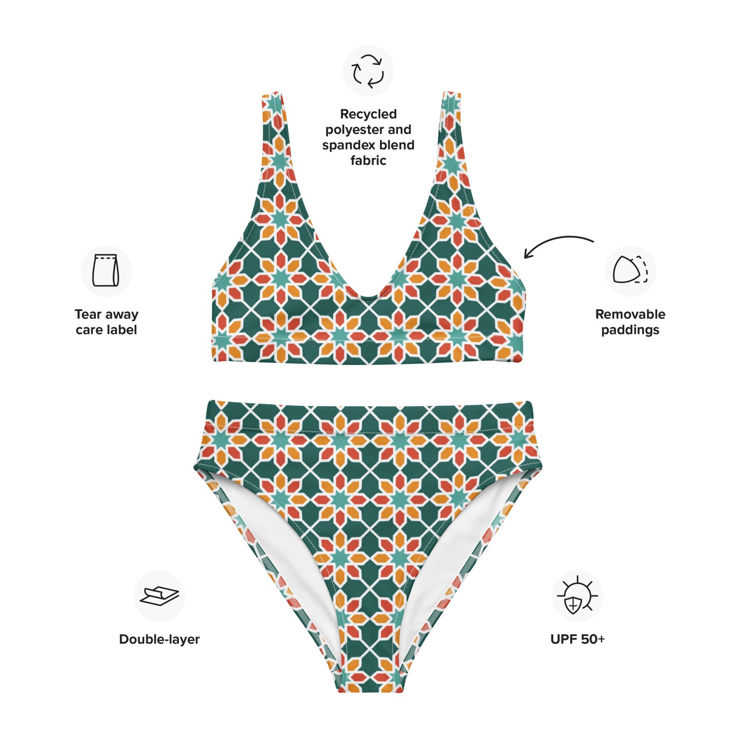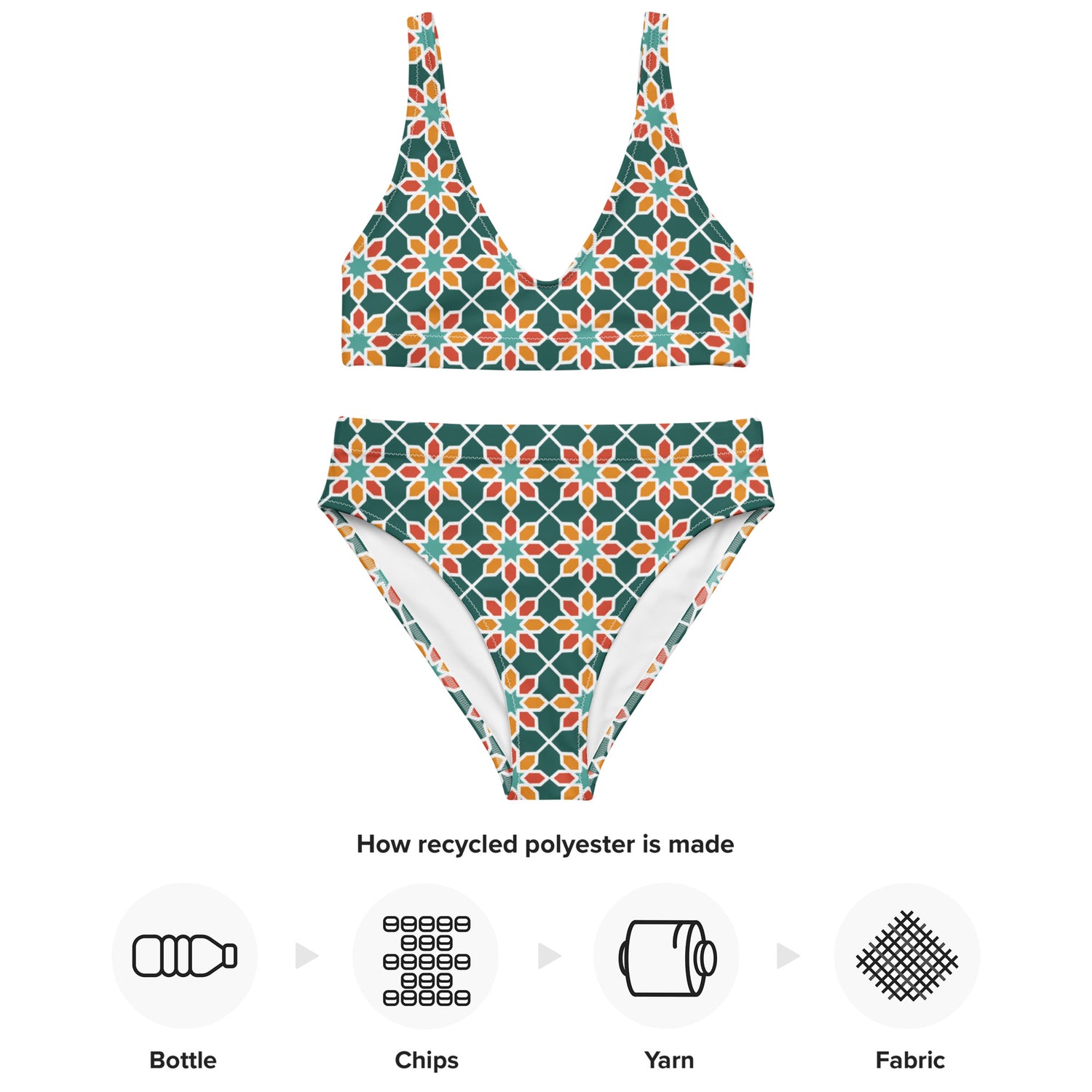 Recycled rPET high-waisted bikini - Geometric Desert Daisy 🍃