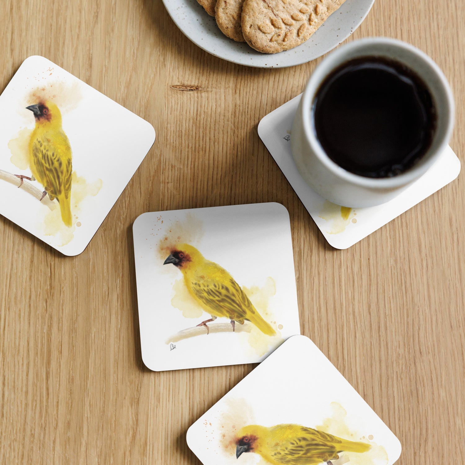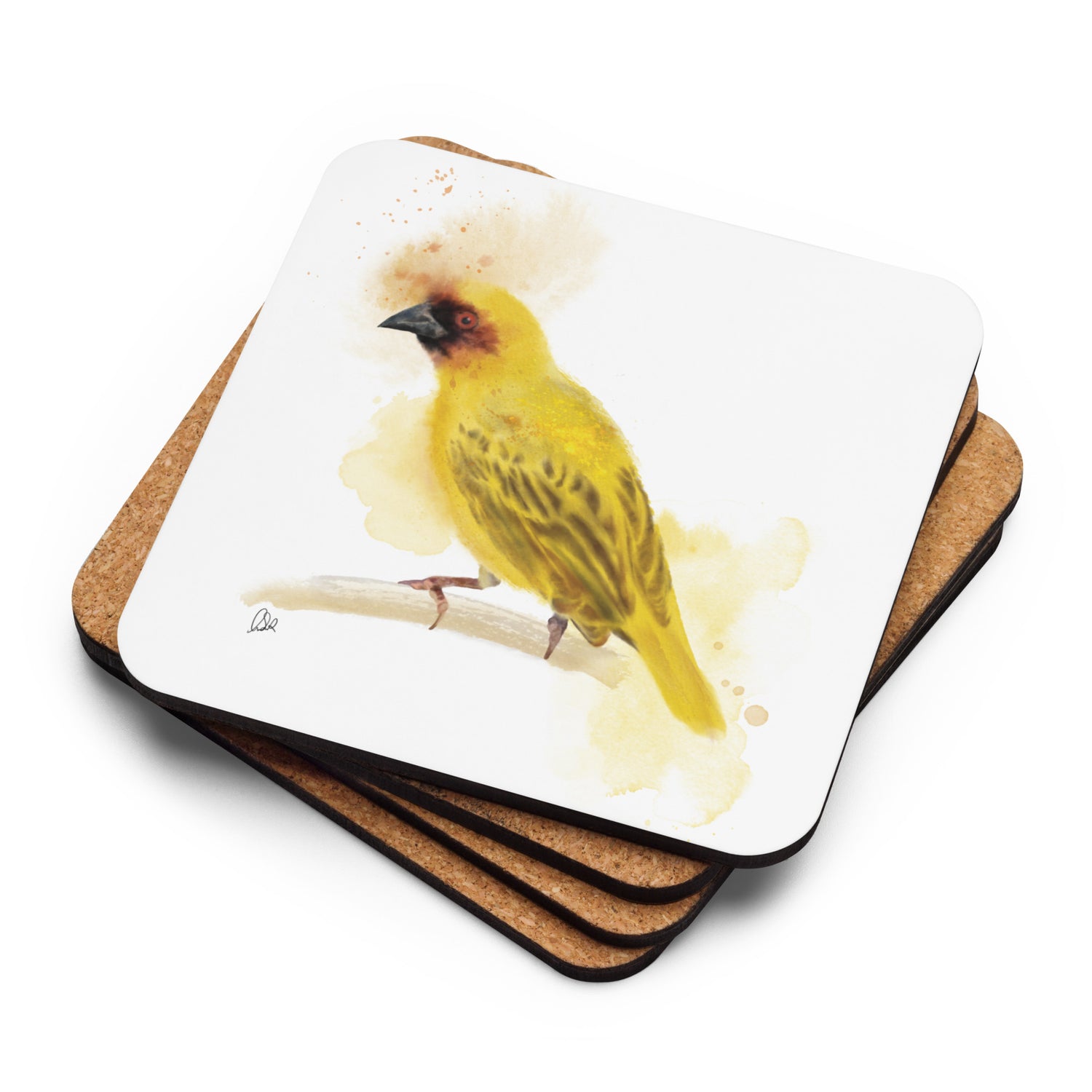 Ruppelle's Weaver Bird Watercolor Cork-back coaster