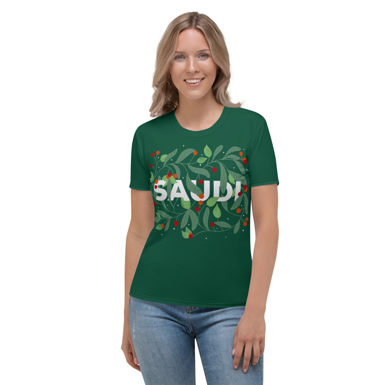 Saudi National Day is September 23rd and this Women's T-shirt was created just for you, to celebrate. With a subtle arabesque design, we asked you what you wanted. It seems you are all comfortable in your patriotism, because you don't need your T-shirt to scream National Day. You asked for an elegant way to show your pride and here it is.