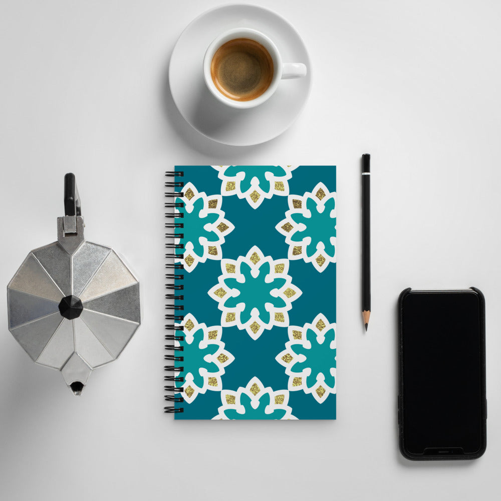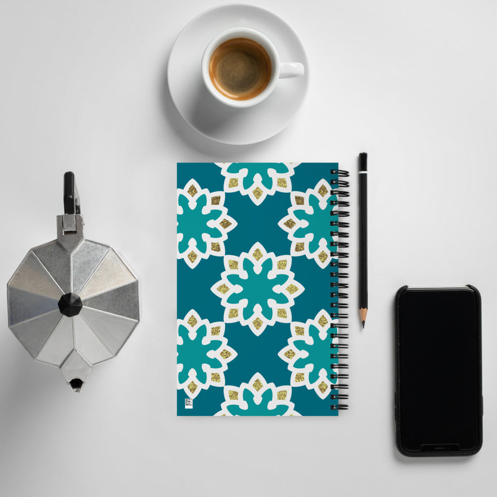 Spiral notebook - Arabesque Flowers in Aqua and Gold