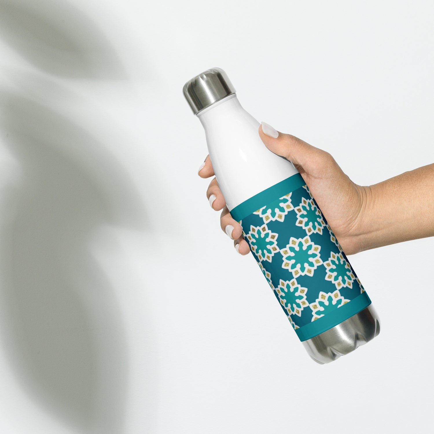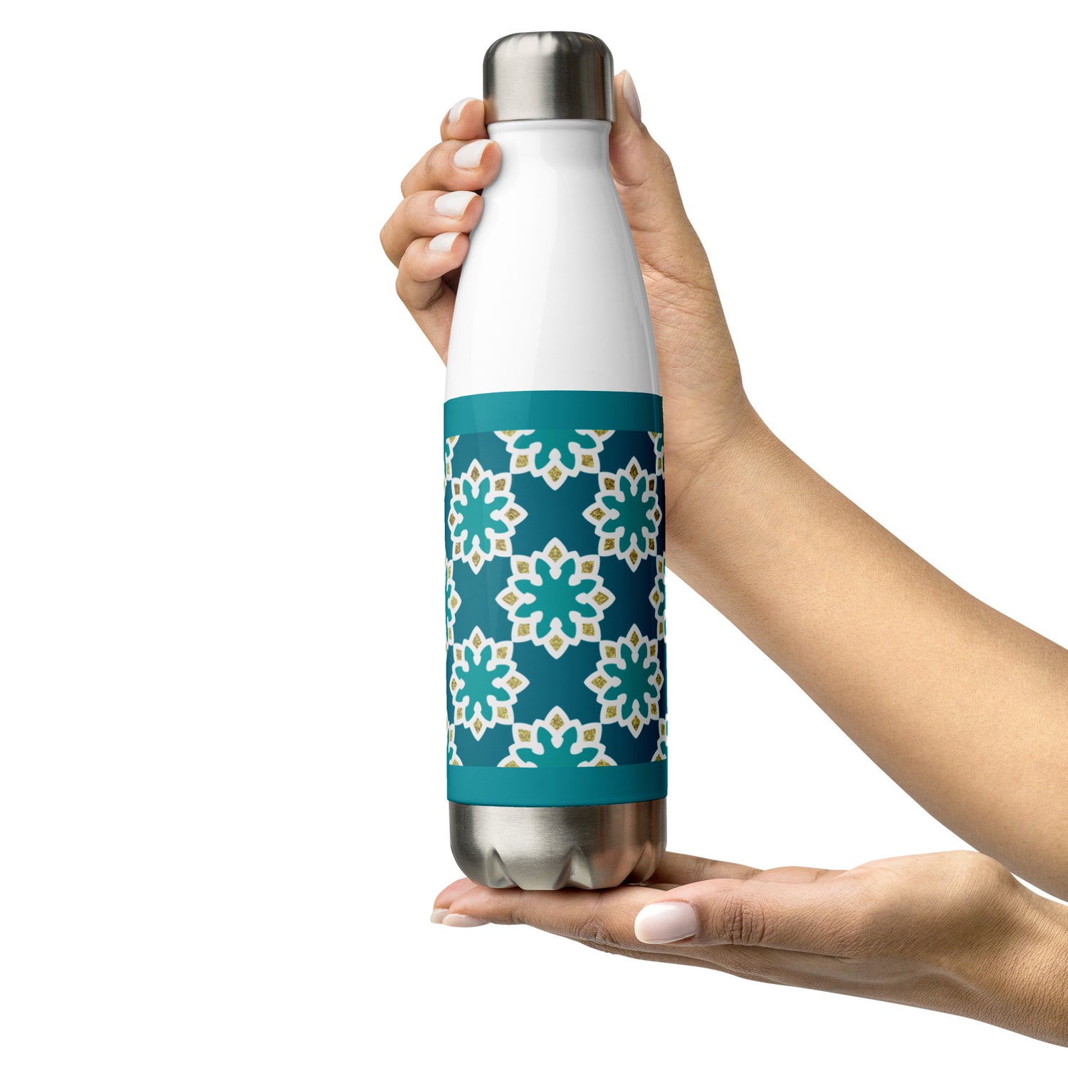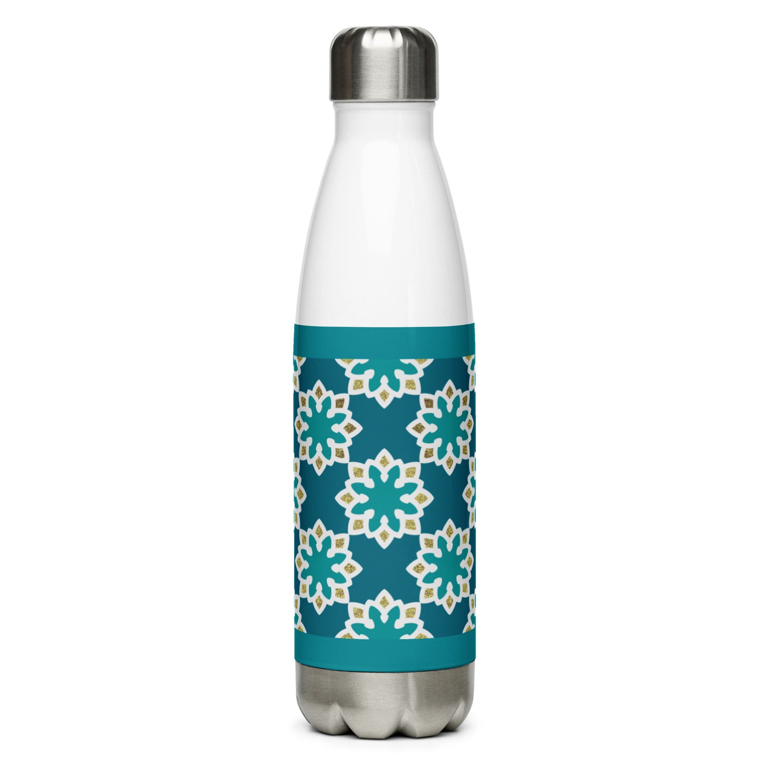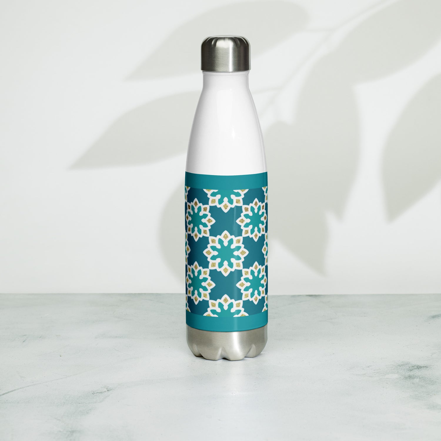 Stainless Steel Water Bottle - Arabesque Flower in Aqua and Gold