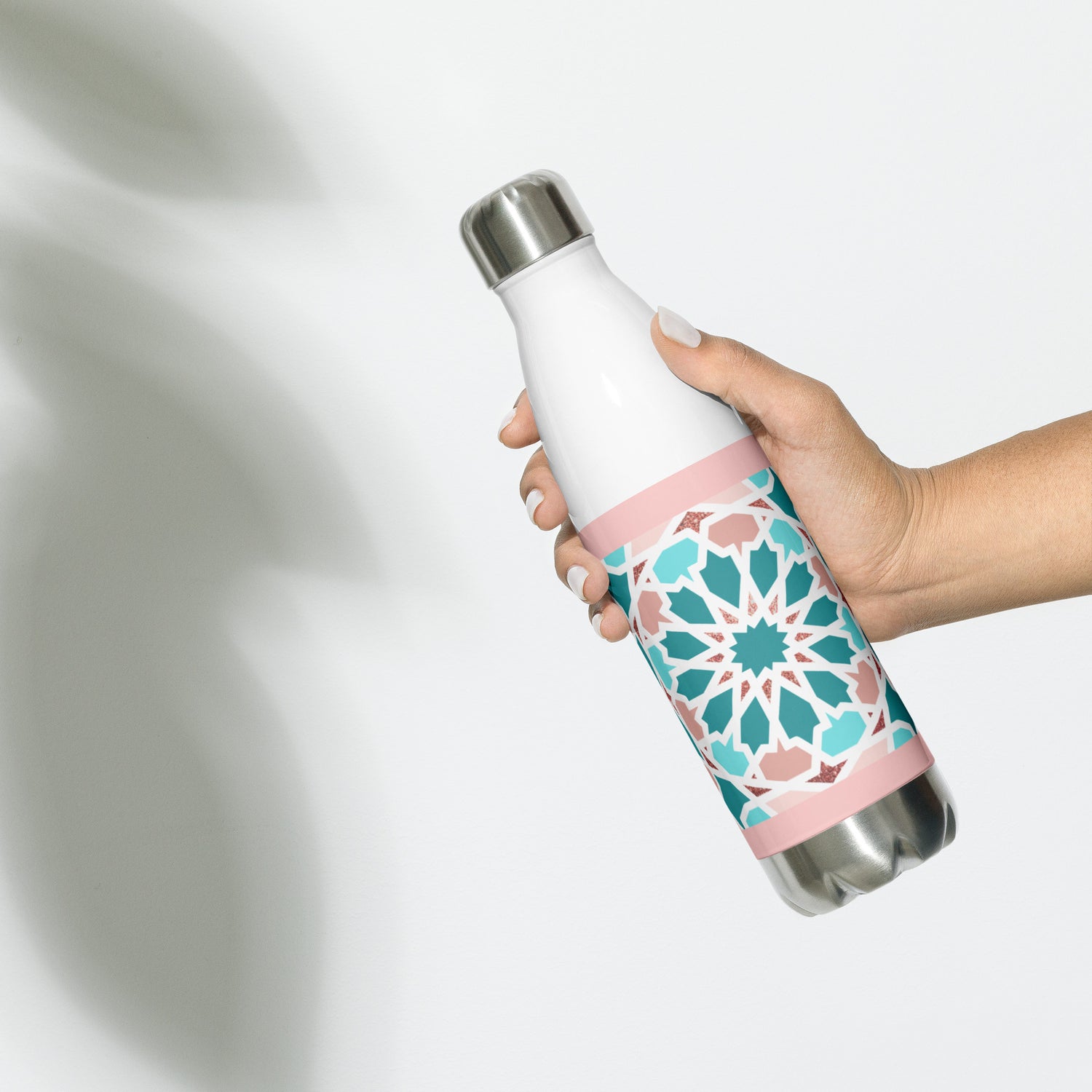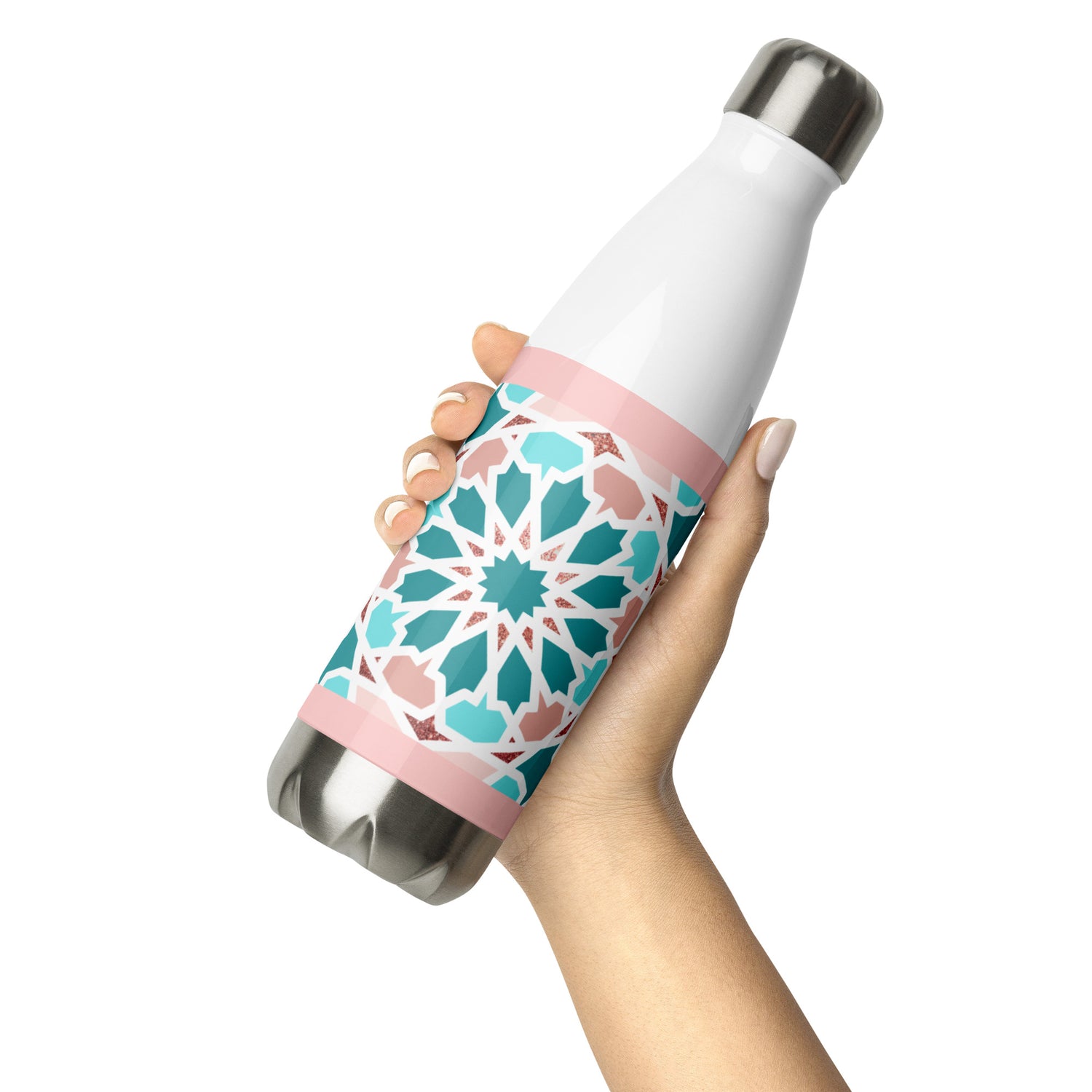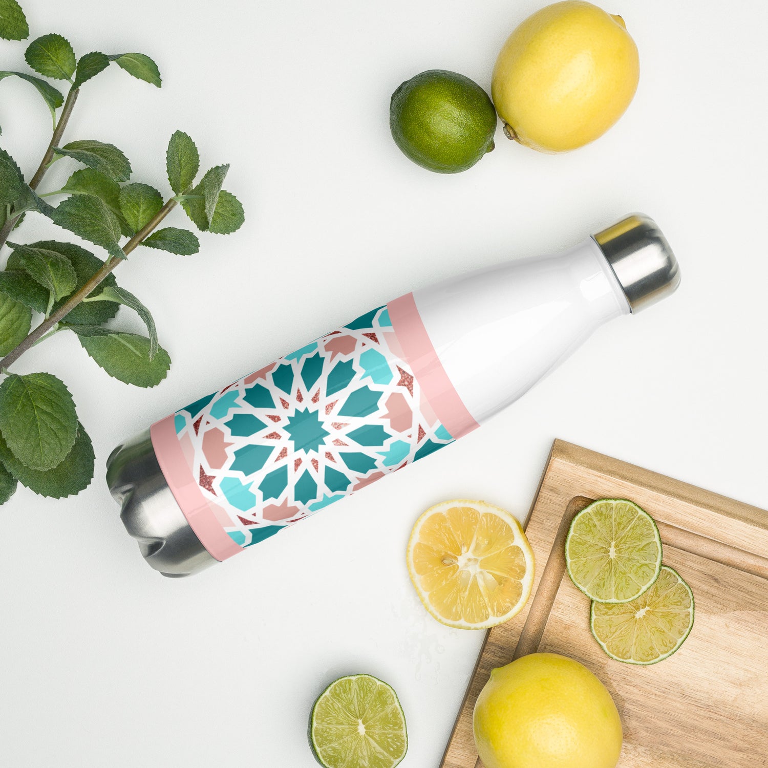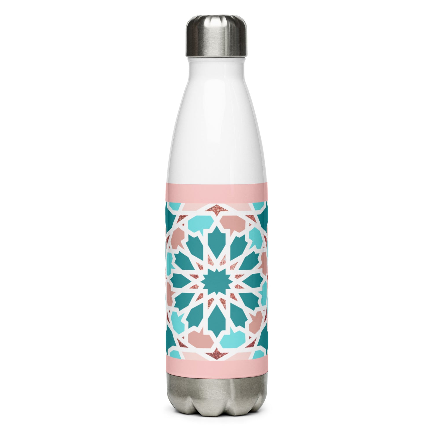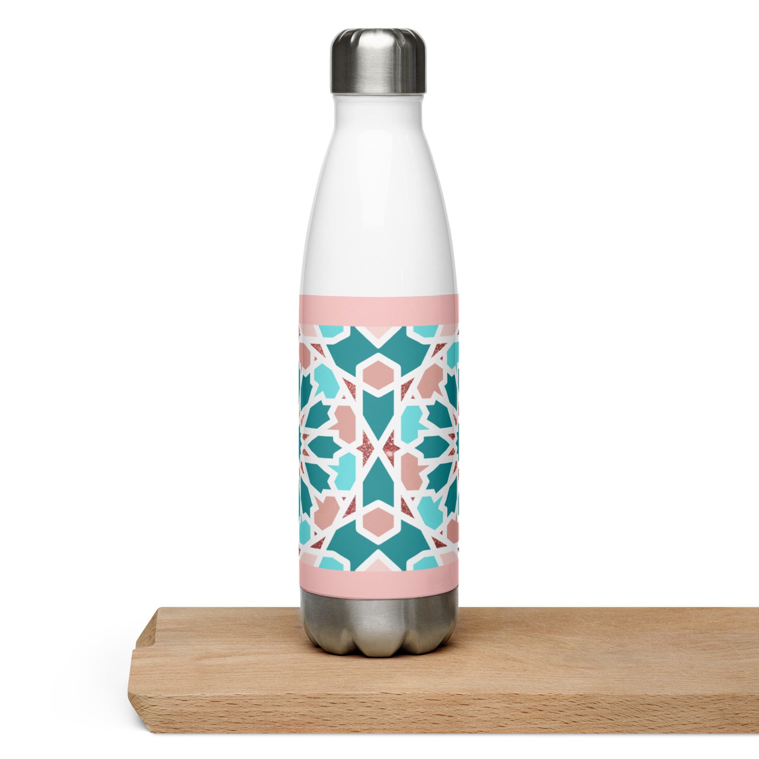 Stainless Steel Water Bottle - Arabian Geometric Pointed Star in Red Sea colors