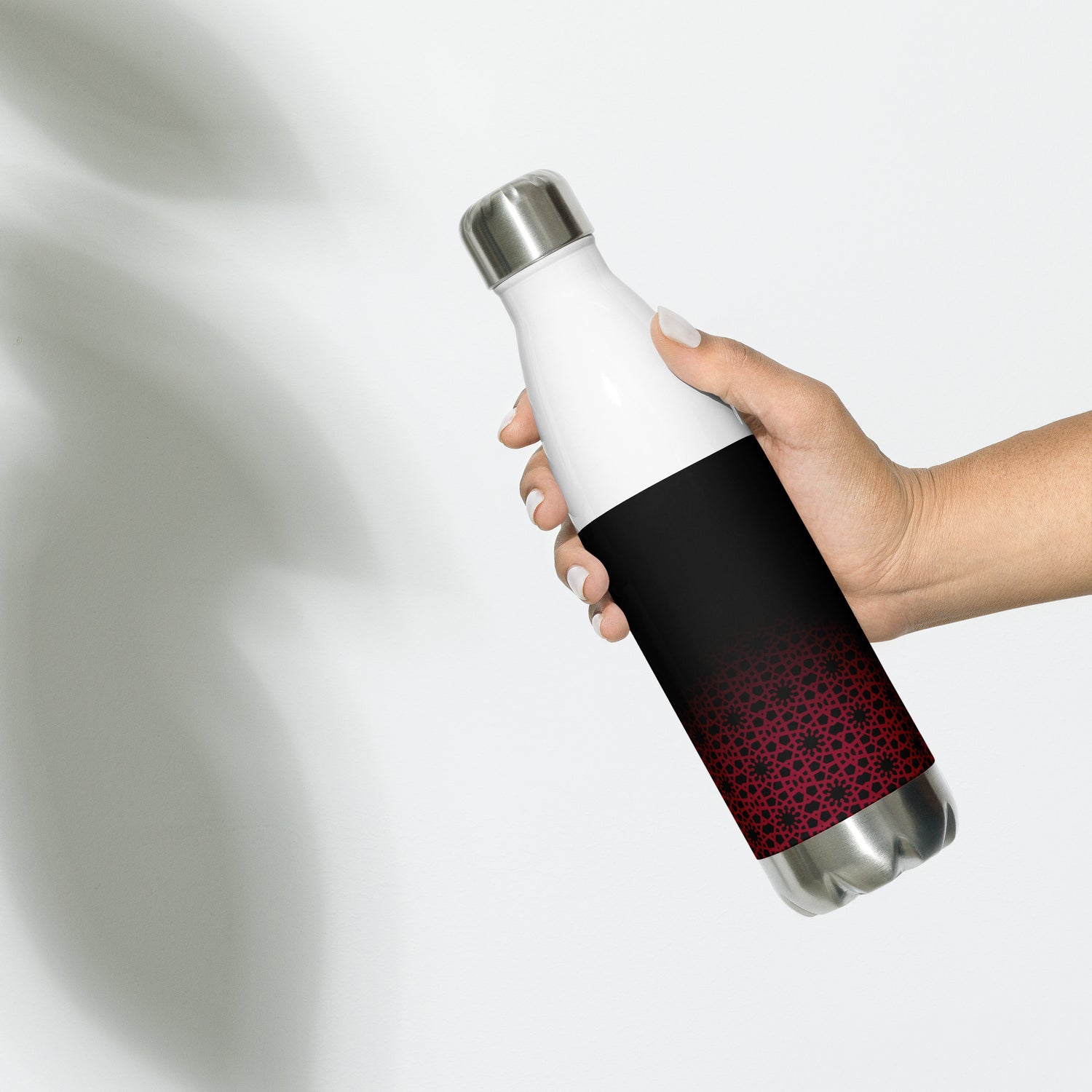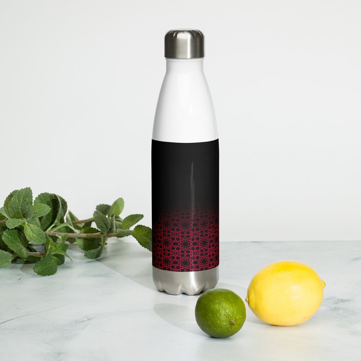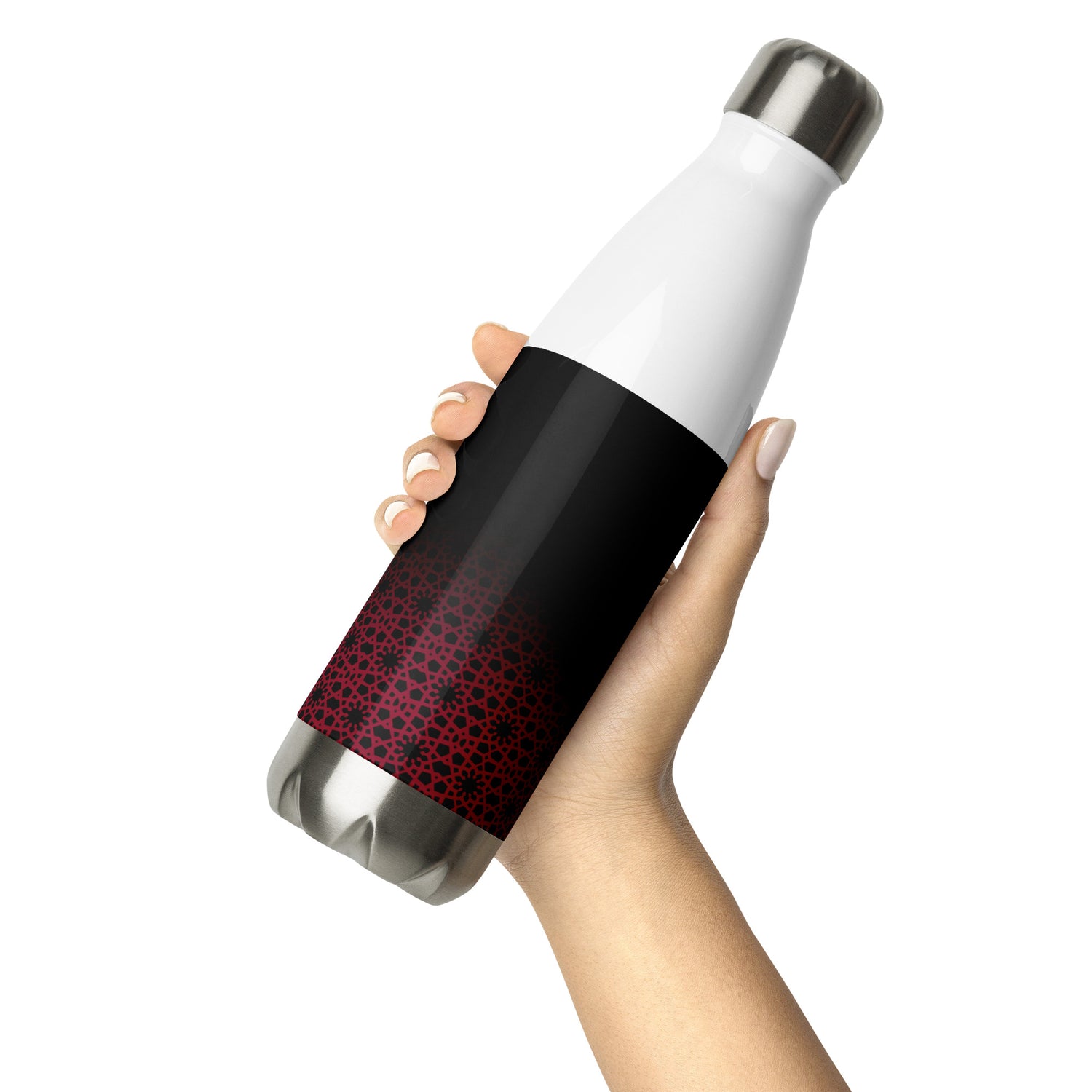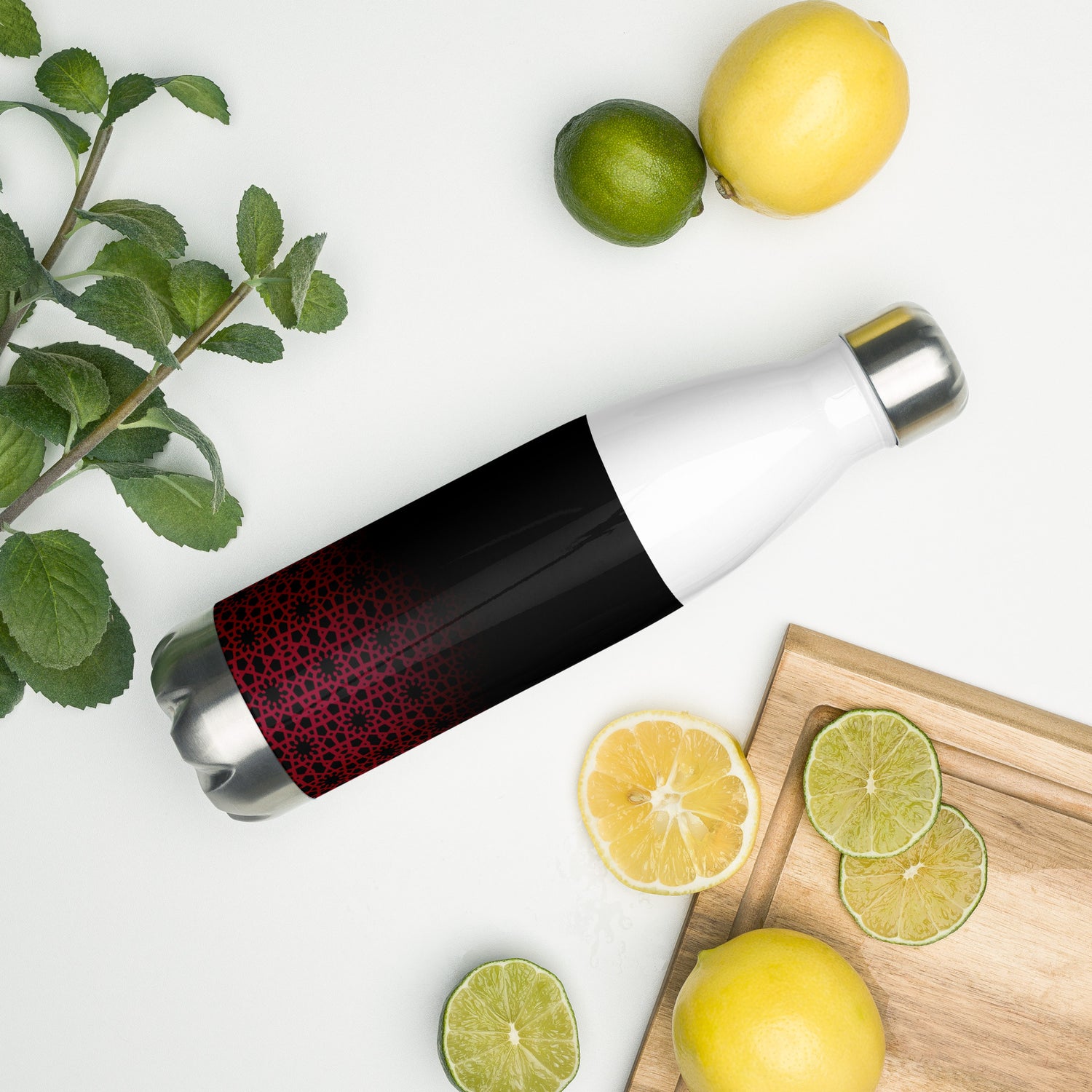 Stainless Steel Water Bottle - Geometric Ombre in Black and Red