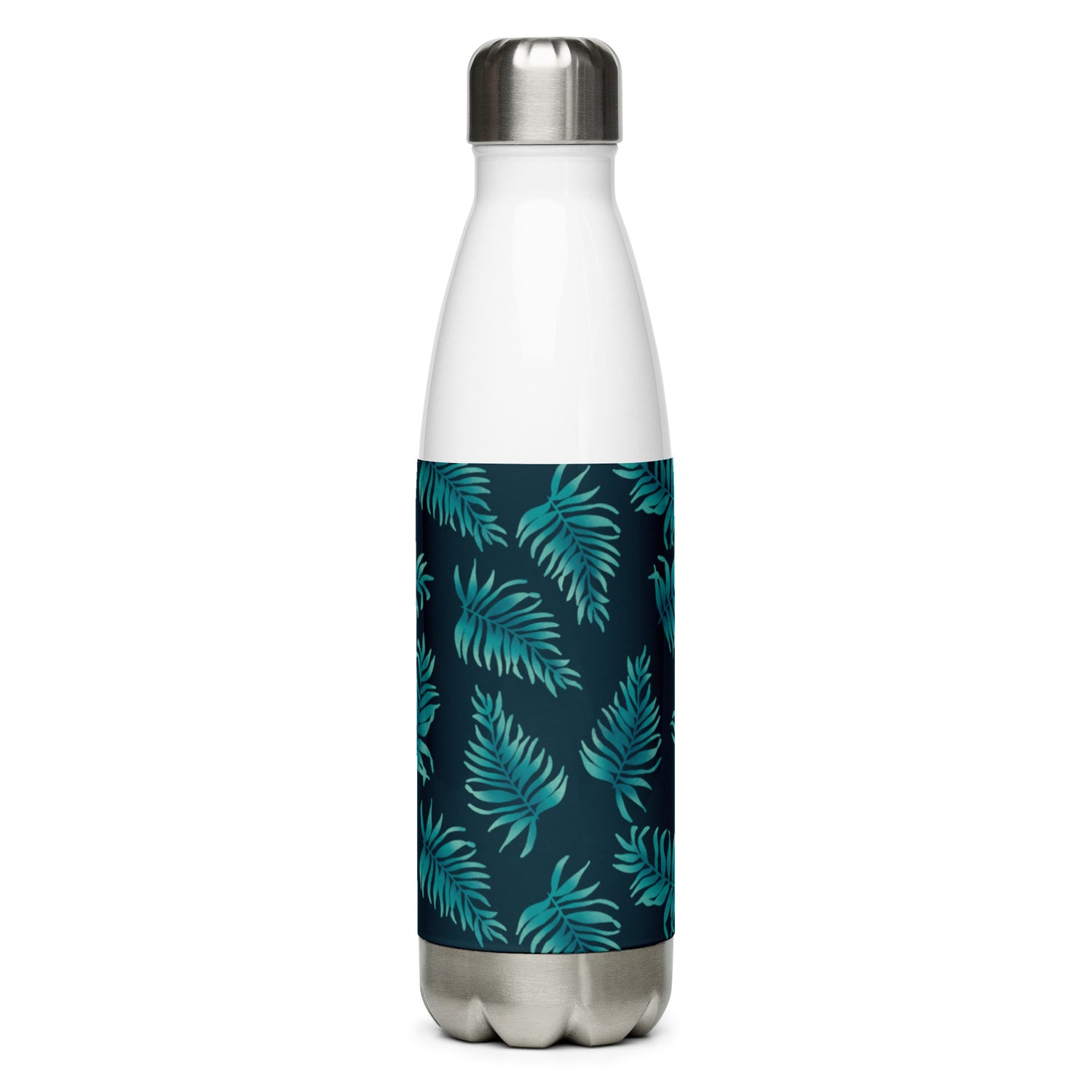 Stainless Steel Water Bottle - Palm Leaves in Blue Ombre