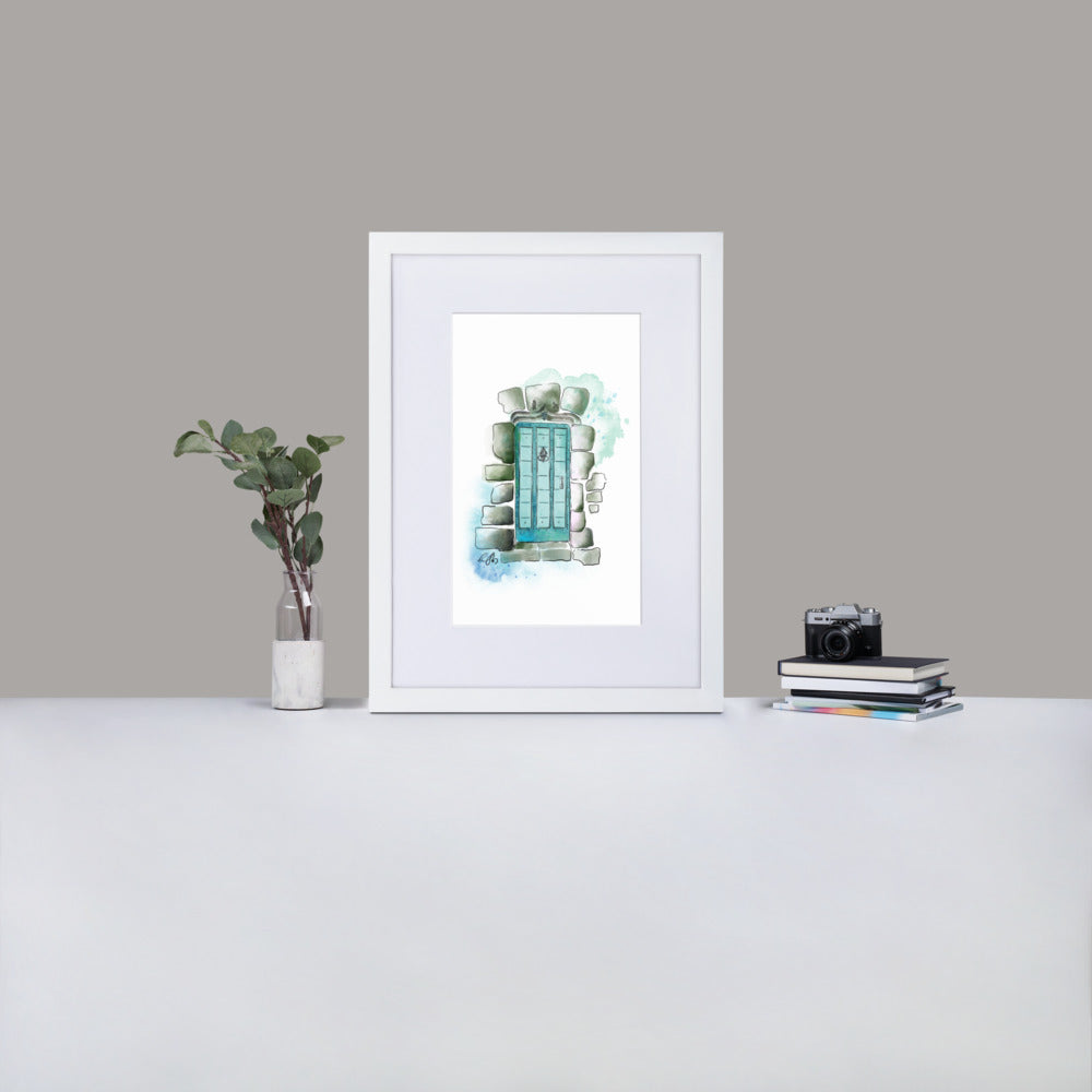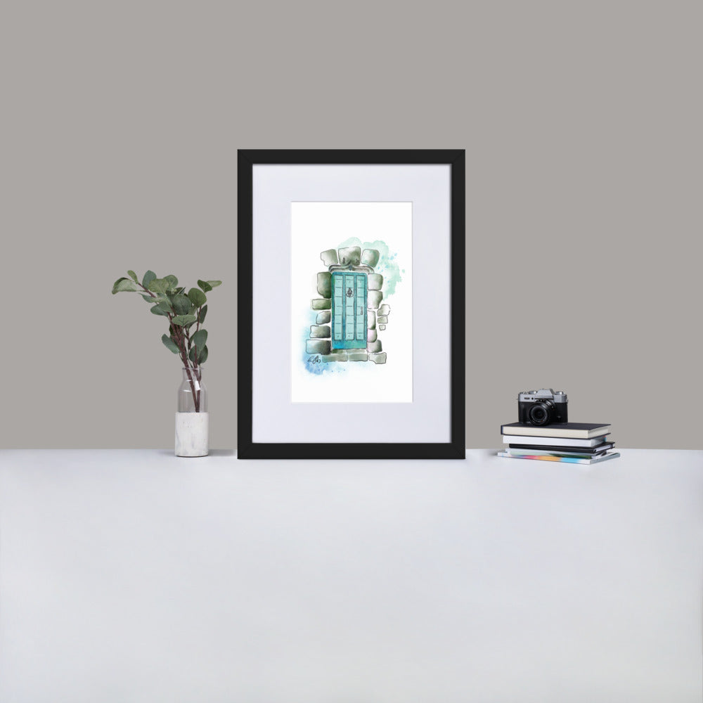 Make any room look more sophisticated by displaying this framed poster print of this watercolor artwork called The Poet, inspired by a door nestled in a medieval village in the Auvergne Rhone Alpes region in France. Featuring a smooth, white mat board, It’s printed on a quality matte paper and framed with a semi-hardwood alder frame. Cultured artwork and a luxury frame will elevate any space with a touch of elegance.