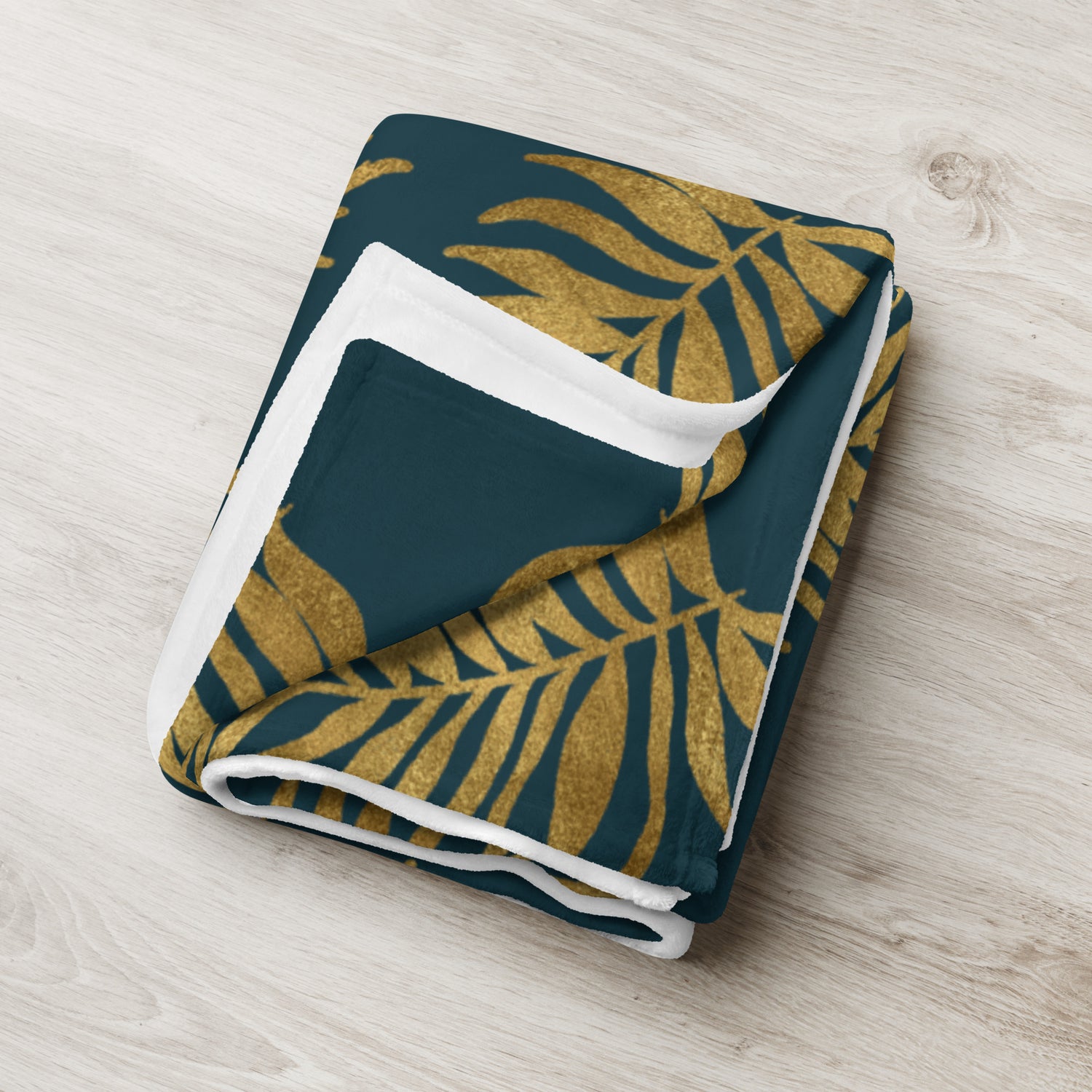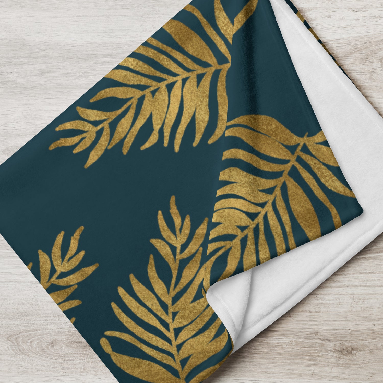 Throw Blanket - Palm Leaves in Gold and Teal