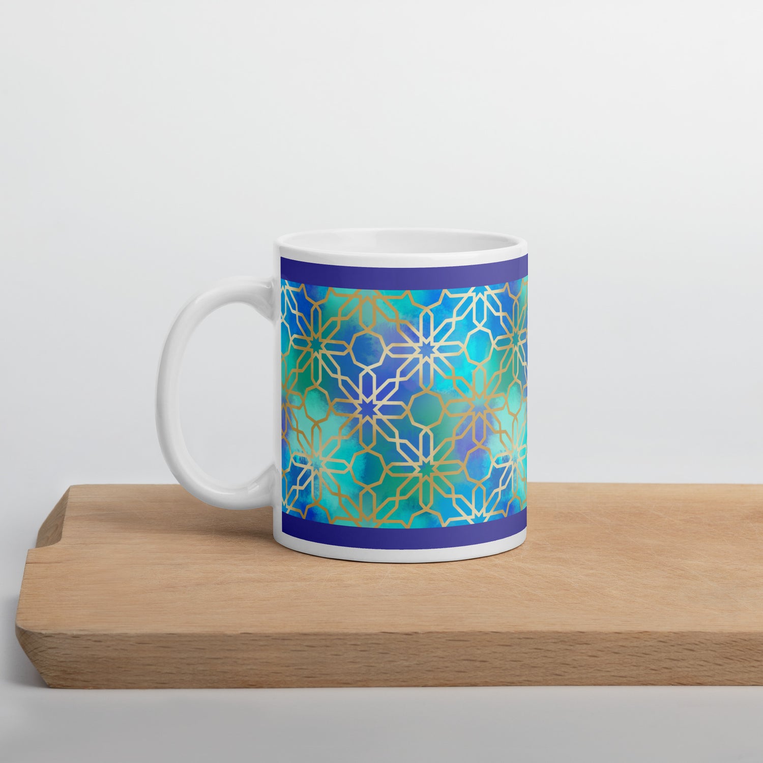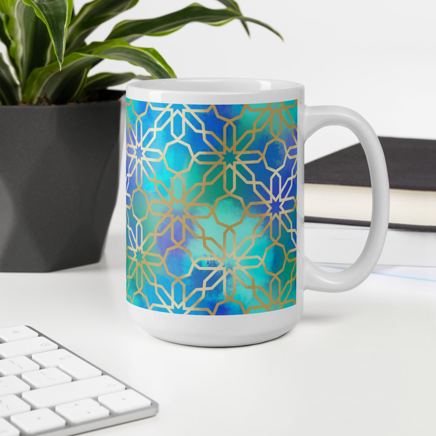 • White glossy mug - Arabian Geometry in Red Sea Watercolors