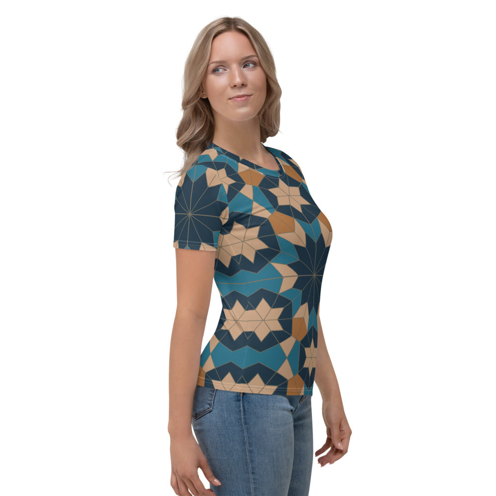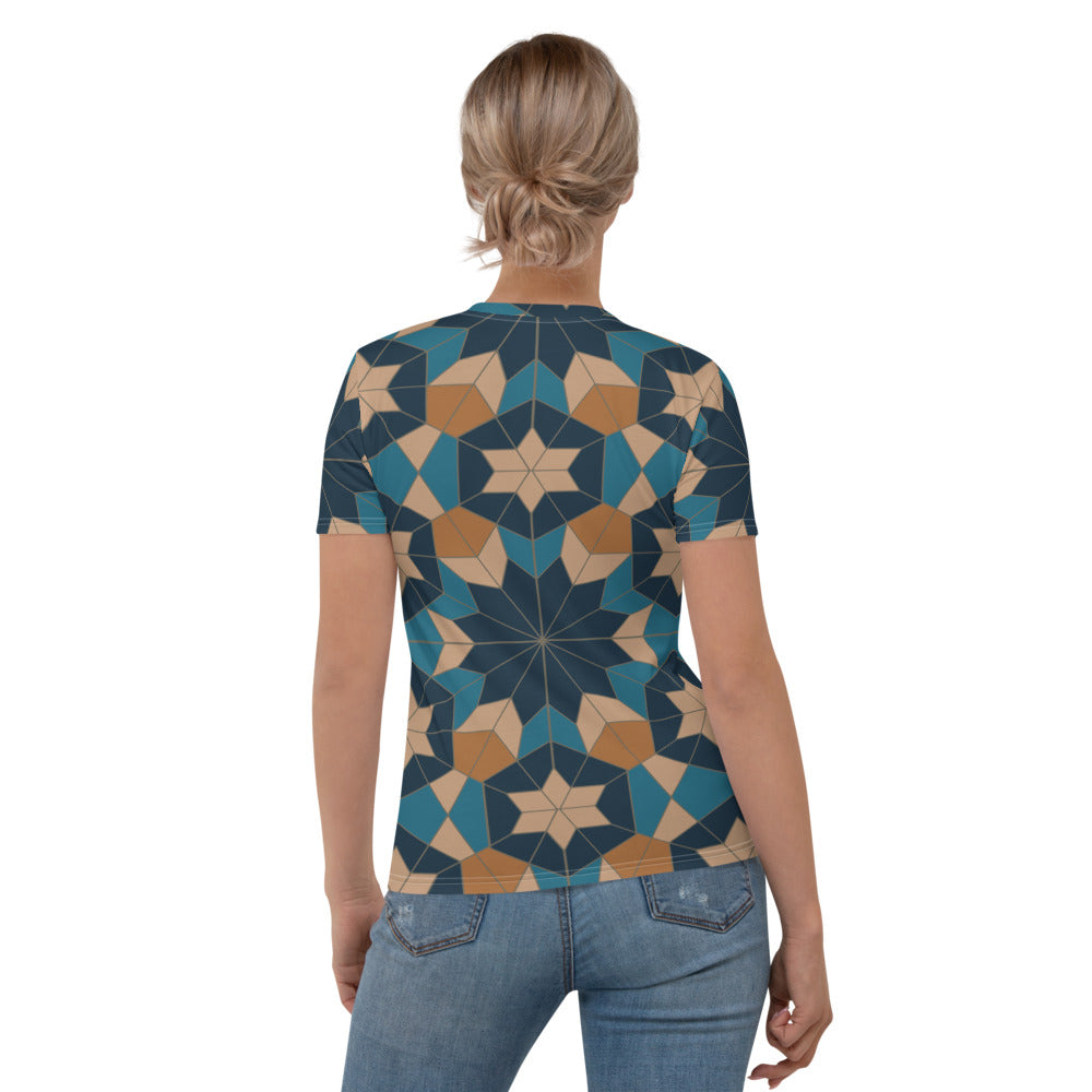 Women's T-shirt - Geometric Star in Red Sea Blue