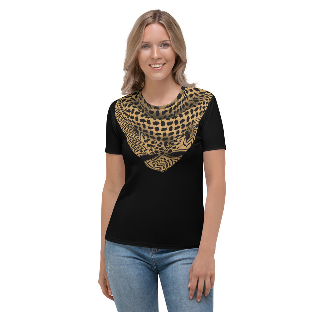 Women's T-shirt - Keffiyeh Shemagh in Tan and Black