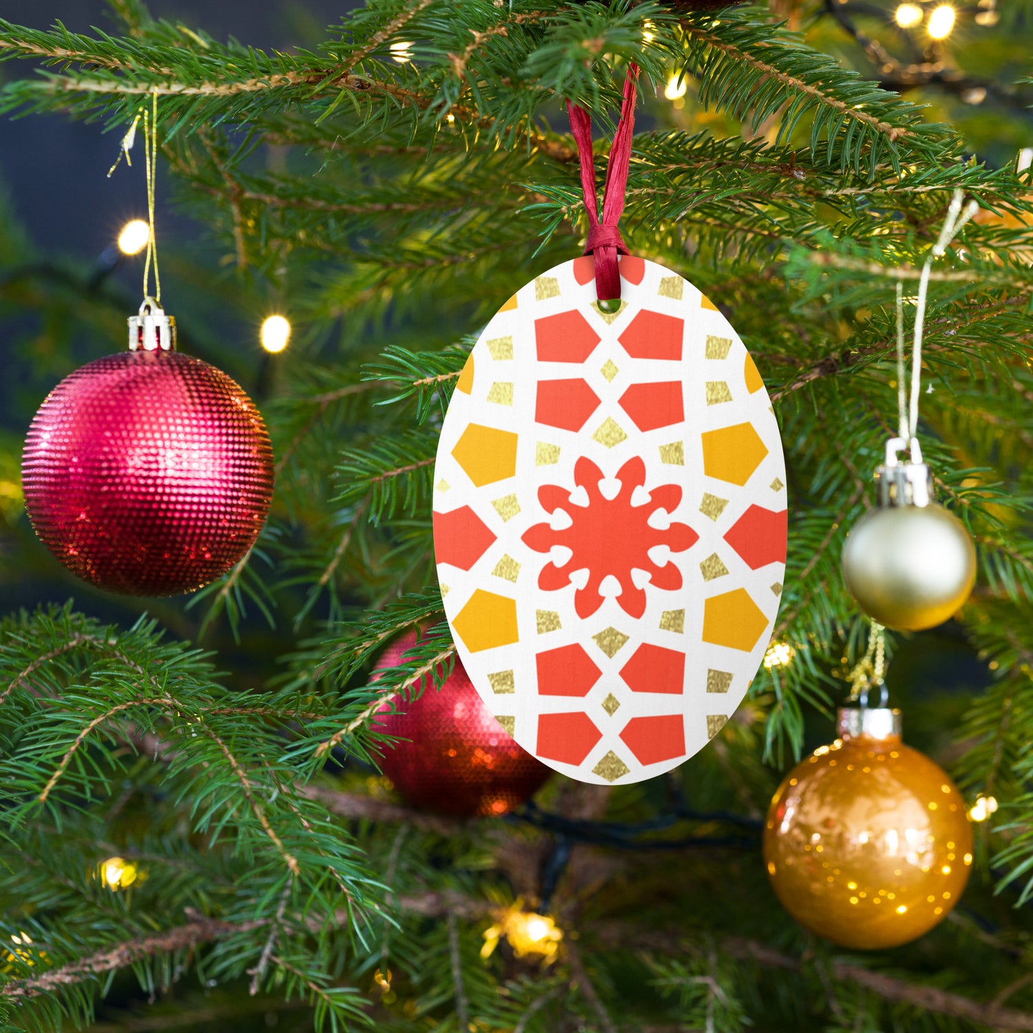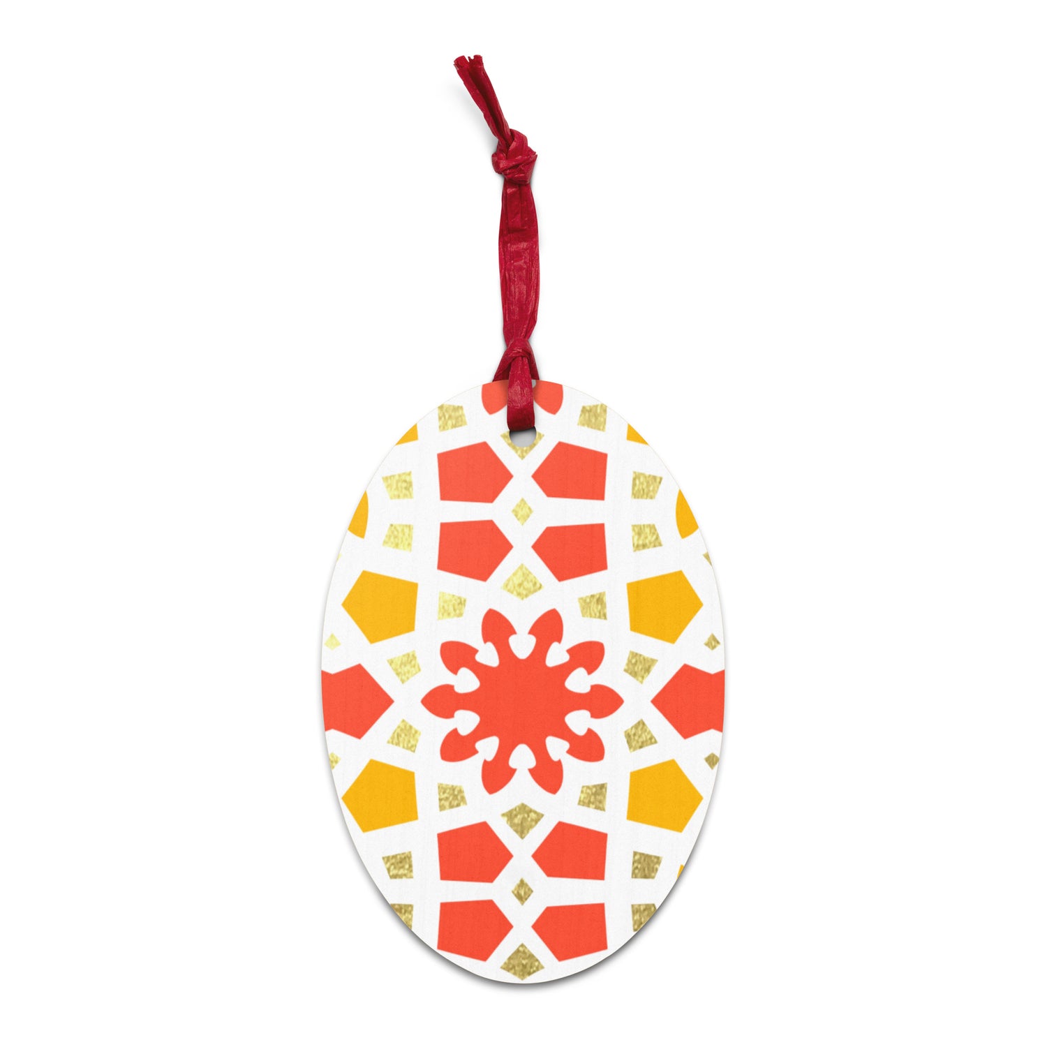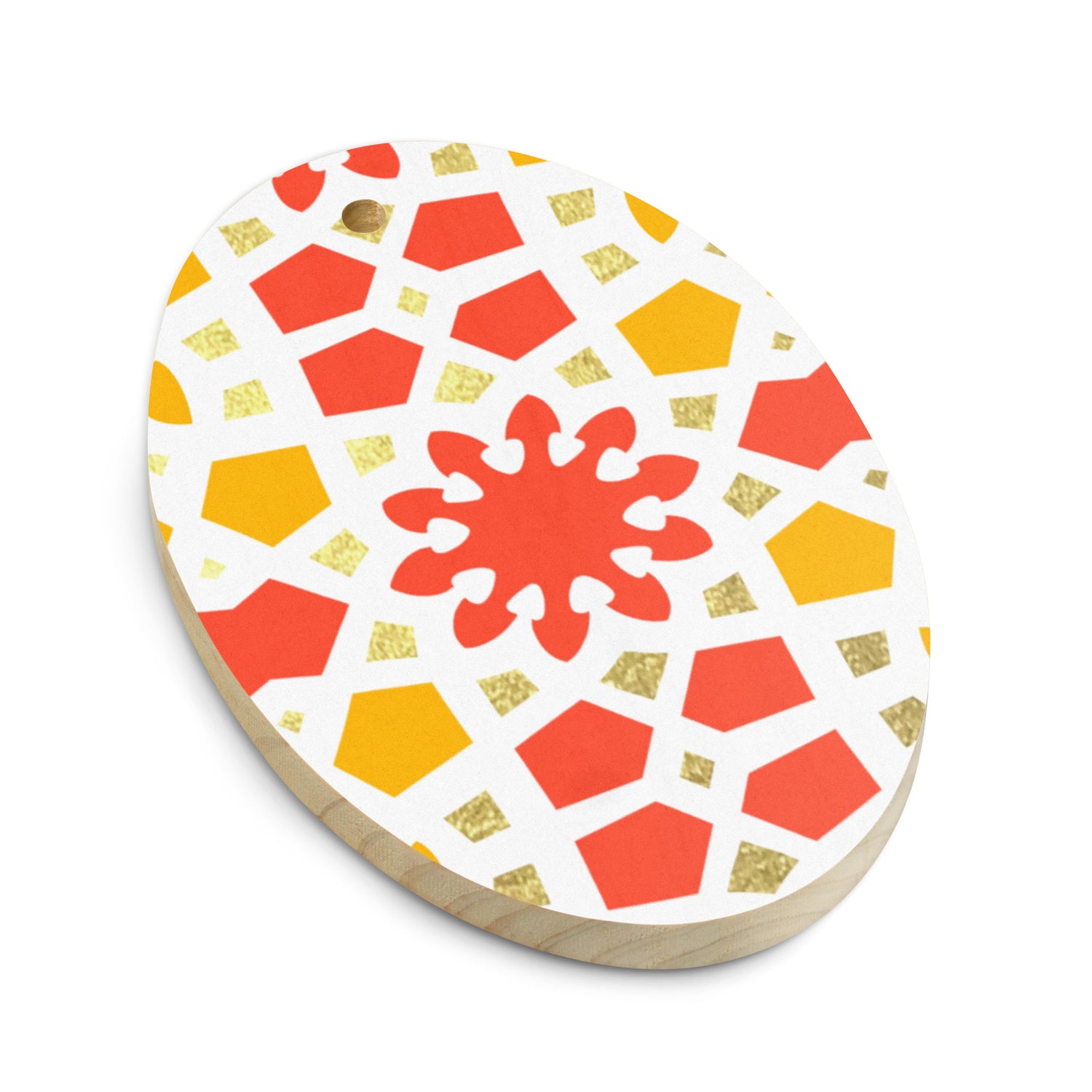 Wooden Holiday Ornaments - Geometric Arabesque in Orange Yellow and Gold