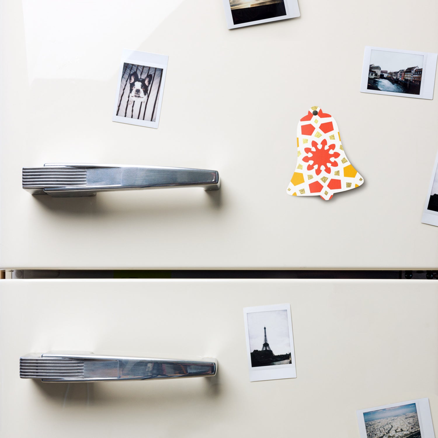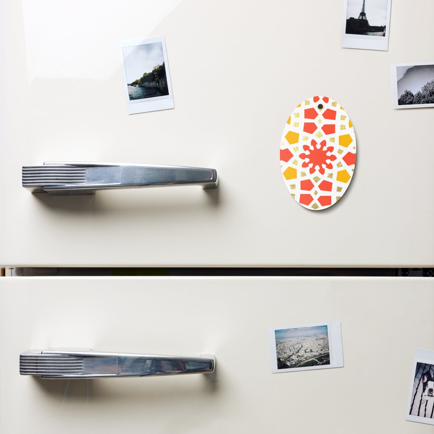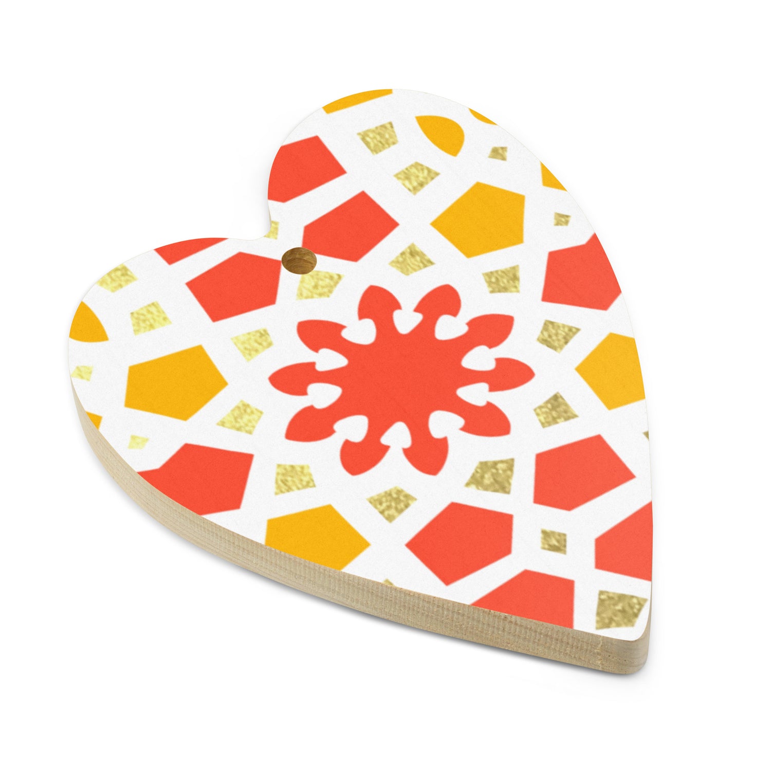 Wooden Holiday Ornaments - Geometric Arabesque in Orange Yellow and Gold