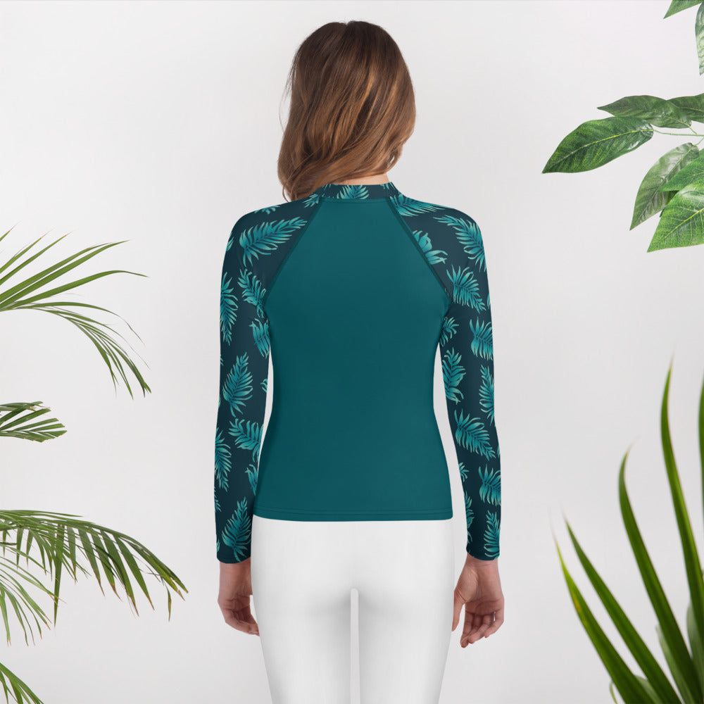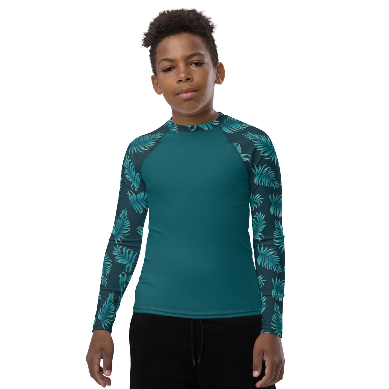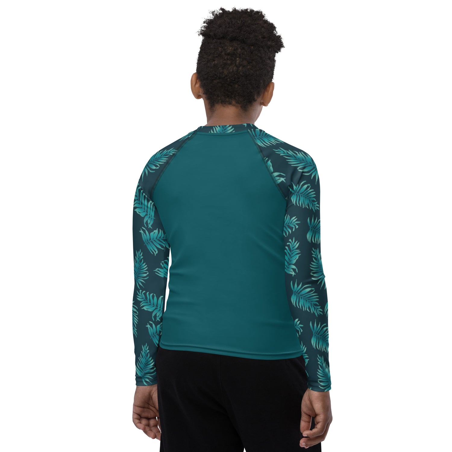 Youth Rash Guard - Palm Leaves in Blue Ombre